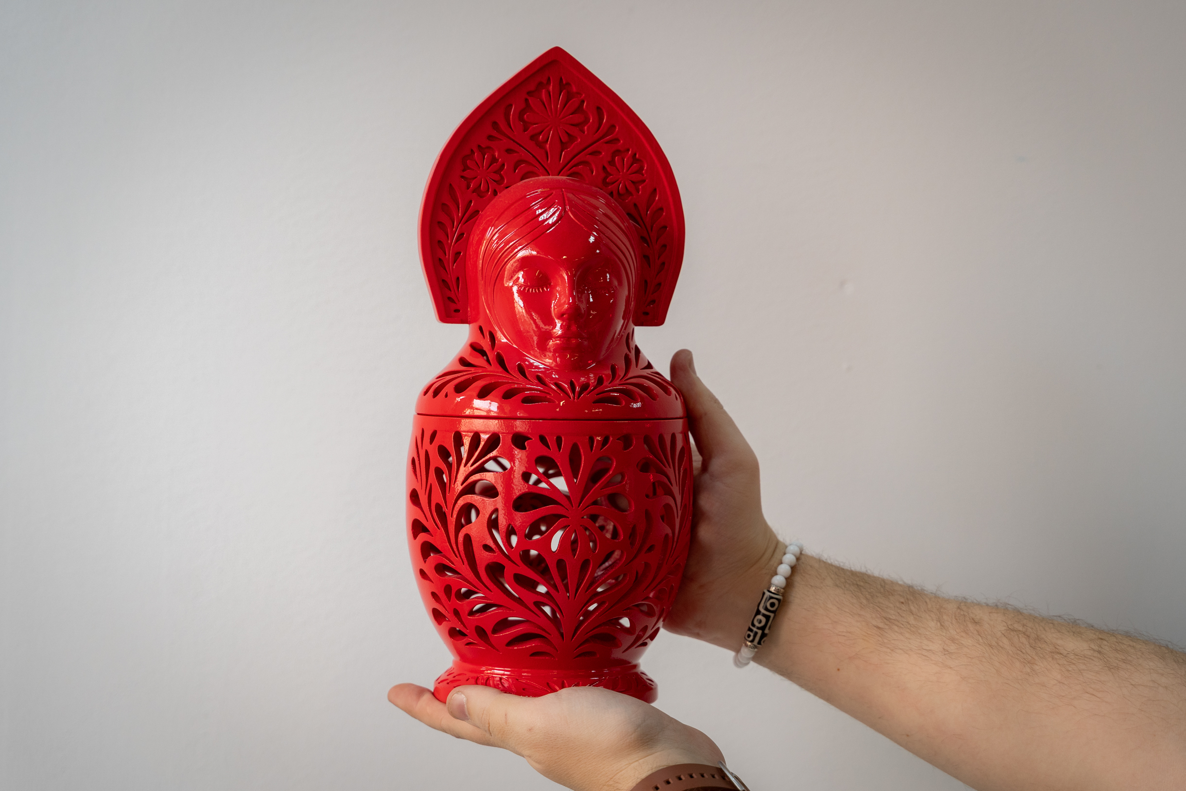 С тех пор я перепробовал многое: от продажи шкатулок для украшений до создания женских сумок за полмиллиона рублей. Сейчас мы с командой делаем подставки для умных колонок в виде матрешек.