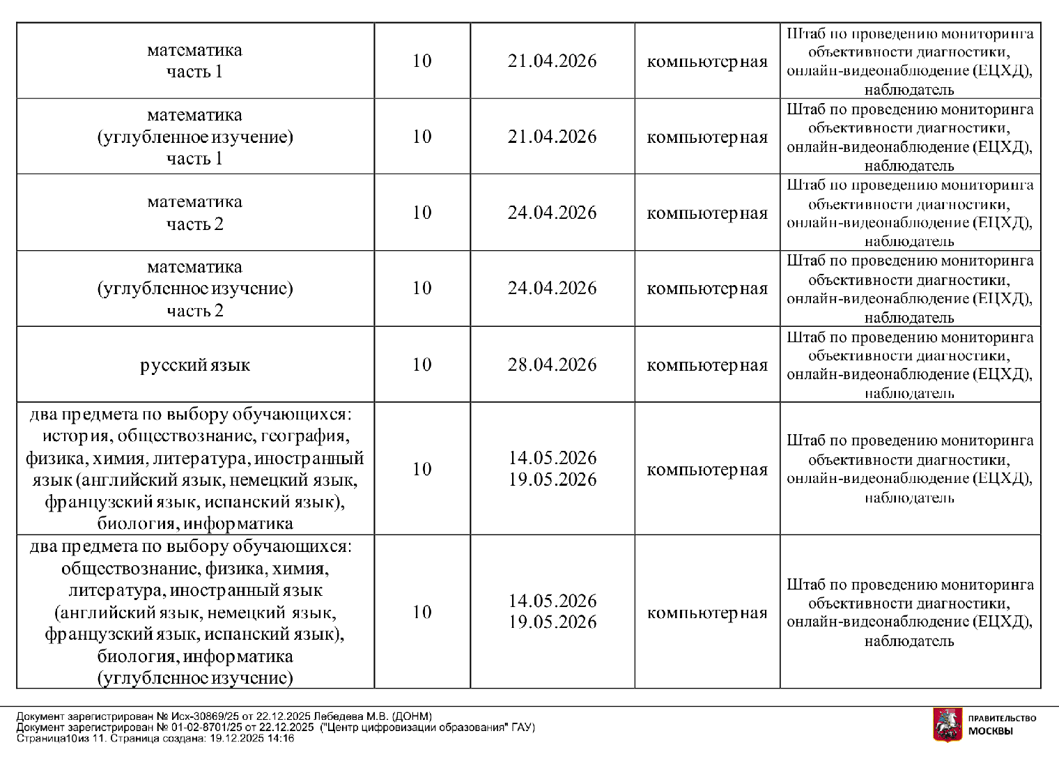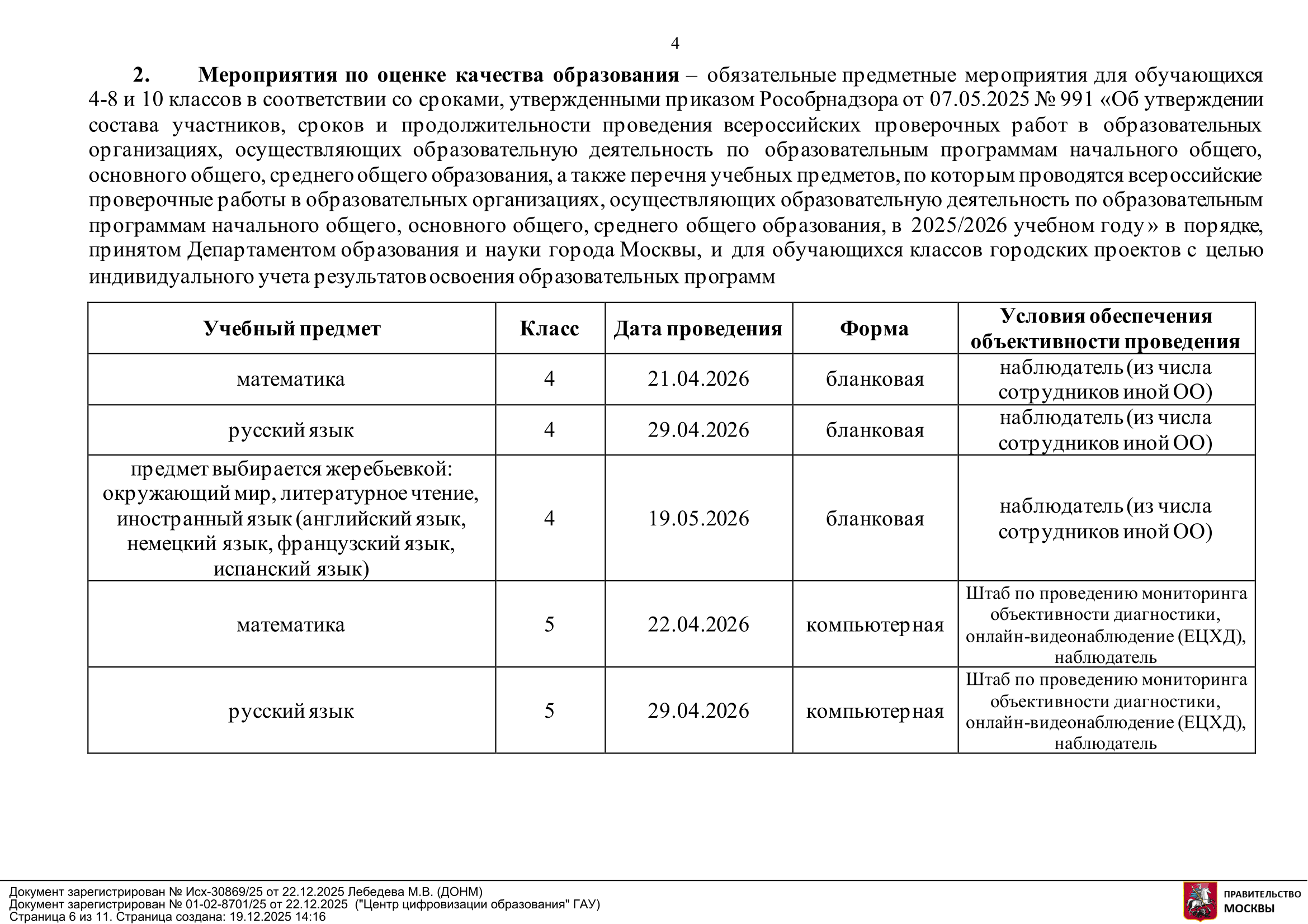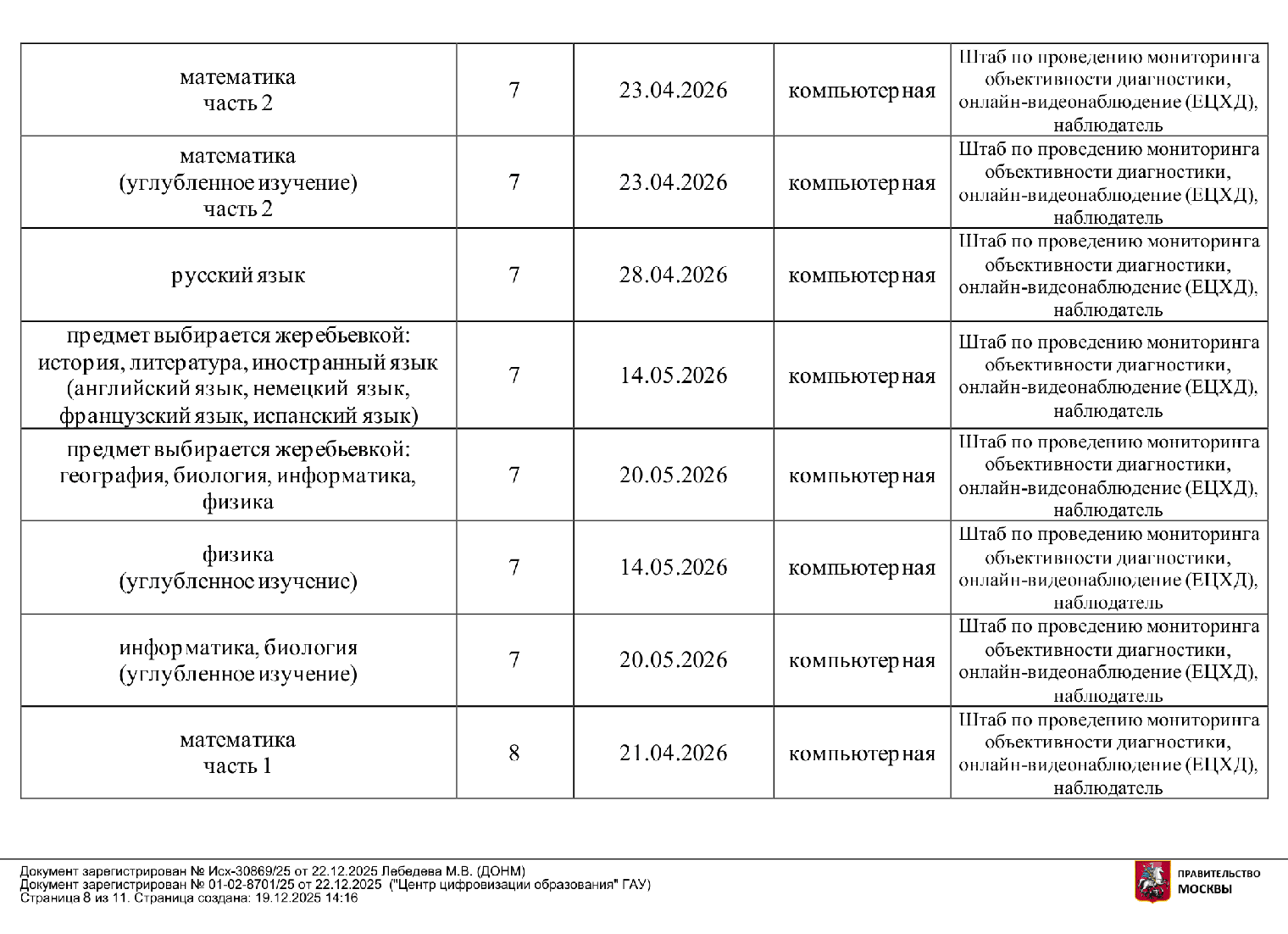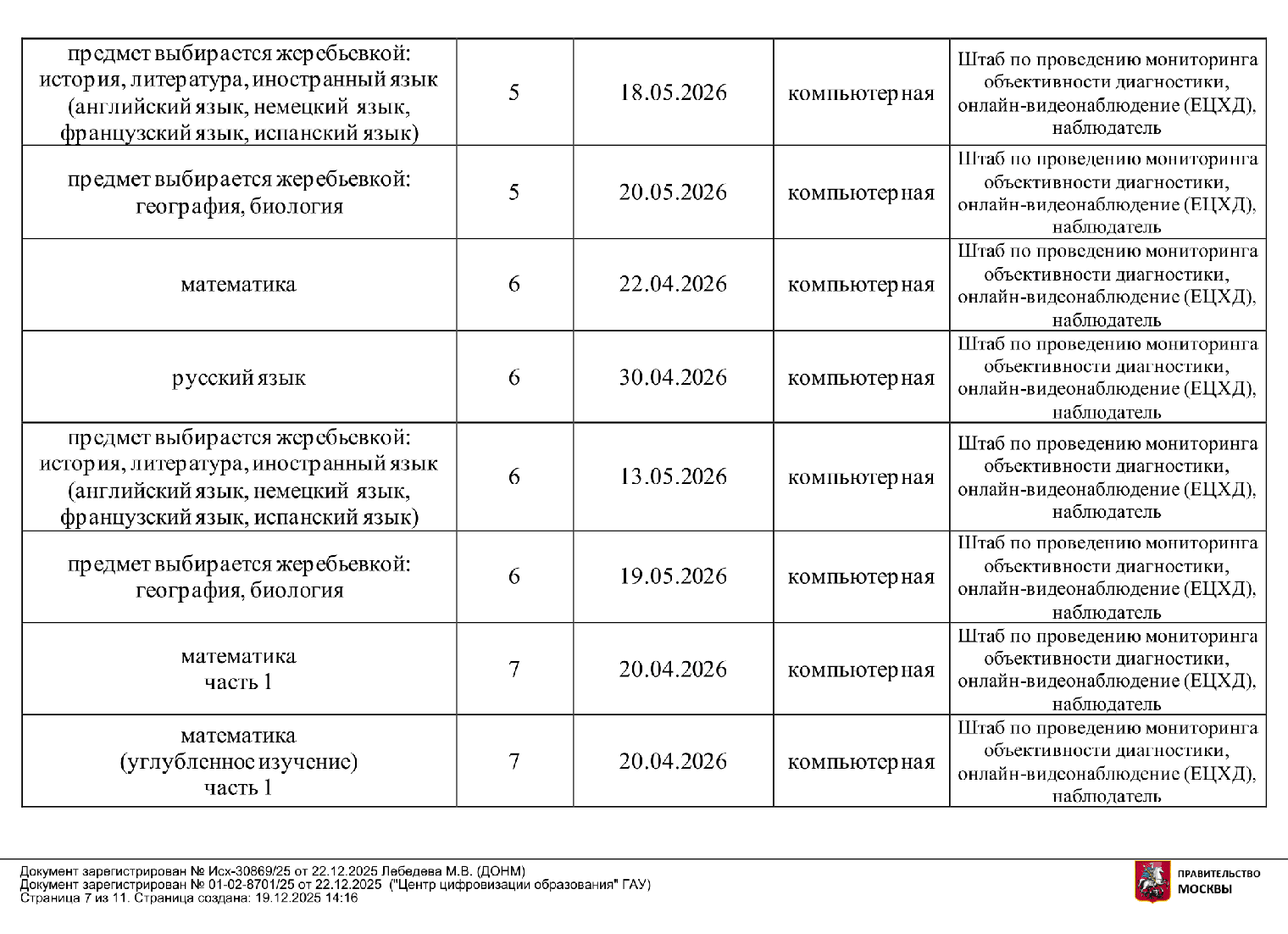 В 2025/26 учебном году работы проводят в марте — мае, в следующем график и набор предметов могут быть другими.