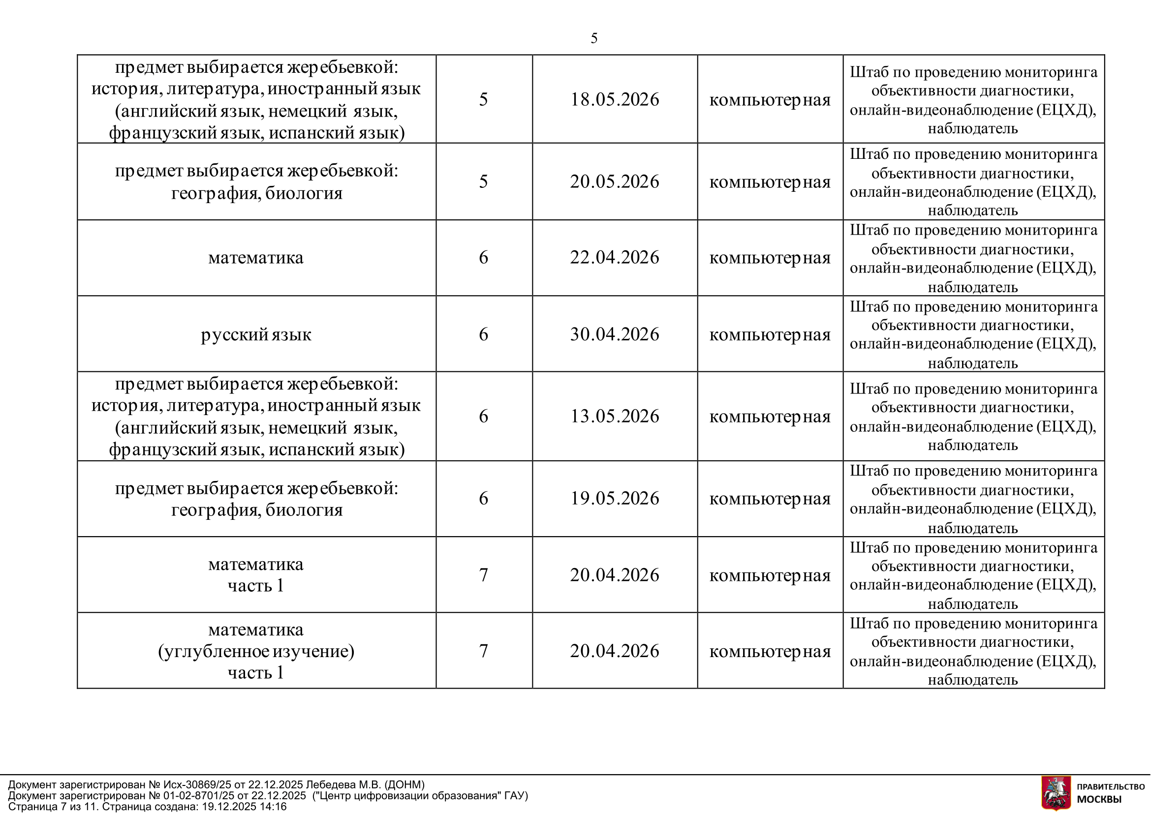 Диагностика в 5—9 классах. В пятых классах в ноябре 2025 года провели диагностику функциональной грамотности. Так называется комплексный тест по читательской, математической и естественно-научной грамотности. В апреле — мае школьники напишут диагностики по математике, русскому языку и двум предметам по жеребьевке. В одном списке — иностранный язык, история, литература, в другом — биология и география.