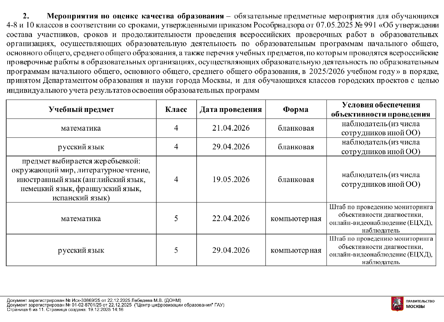 Четвертые классы писали диагностики по математике, русскому языку и дополнительному предмету, выбранному по жеребьевке, — в 2025 году им стал окружающий мир. Некоторые школы формируют сильные пятые классы по результатам МЦКО, но это не обязательно.
