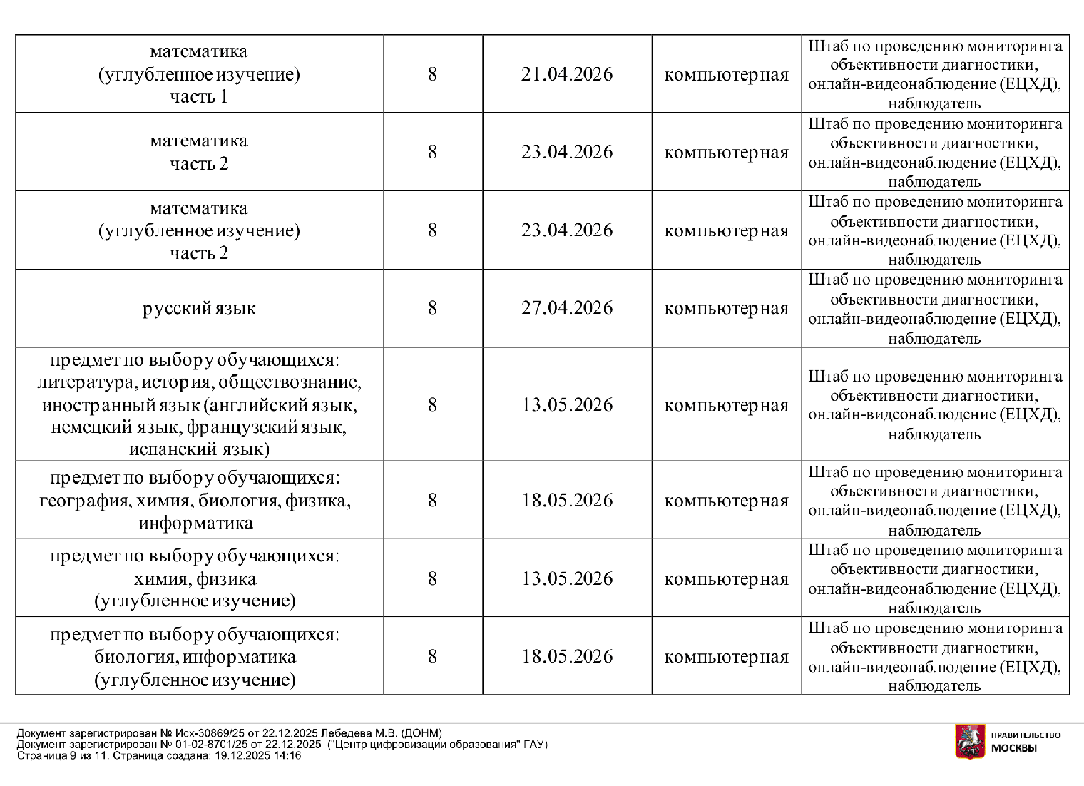 Девятые классы готовятся к ОГЭ. Классы проекта «Математическая вертикаль» пишут итоговую диагностику по вероятности и статистике. В 2026 году она пройдет 11 марта, резервный день — 23 марта. На основании баллов за эту работу школьникам выдают сертификаты об окончании математического класса. Остальные вертикали дополнительно ничего не сдают.