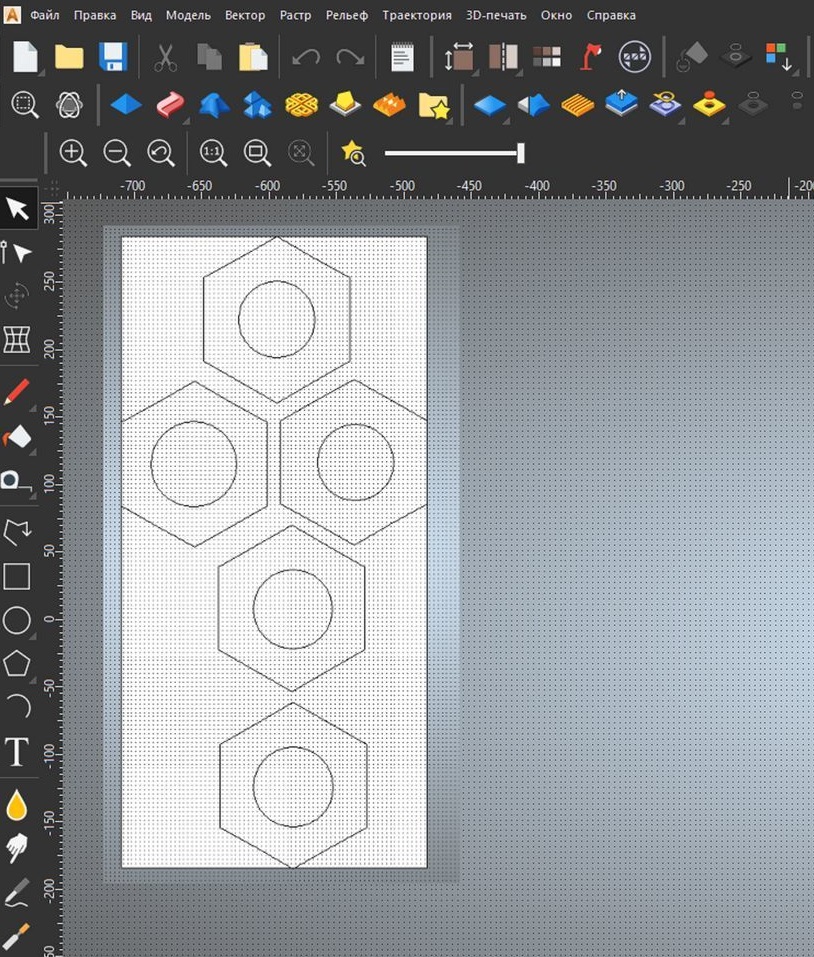 Я делаю макет в ArtCAM. Многие пропускают этот этап — и потом выбрасывают материал. Без точного чертежа медальница из фанеры получается кривой, а соты не стыкуются.
