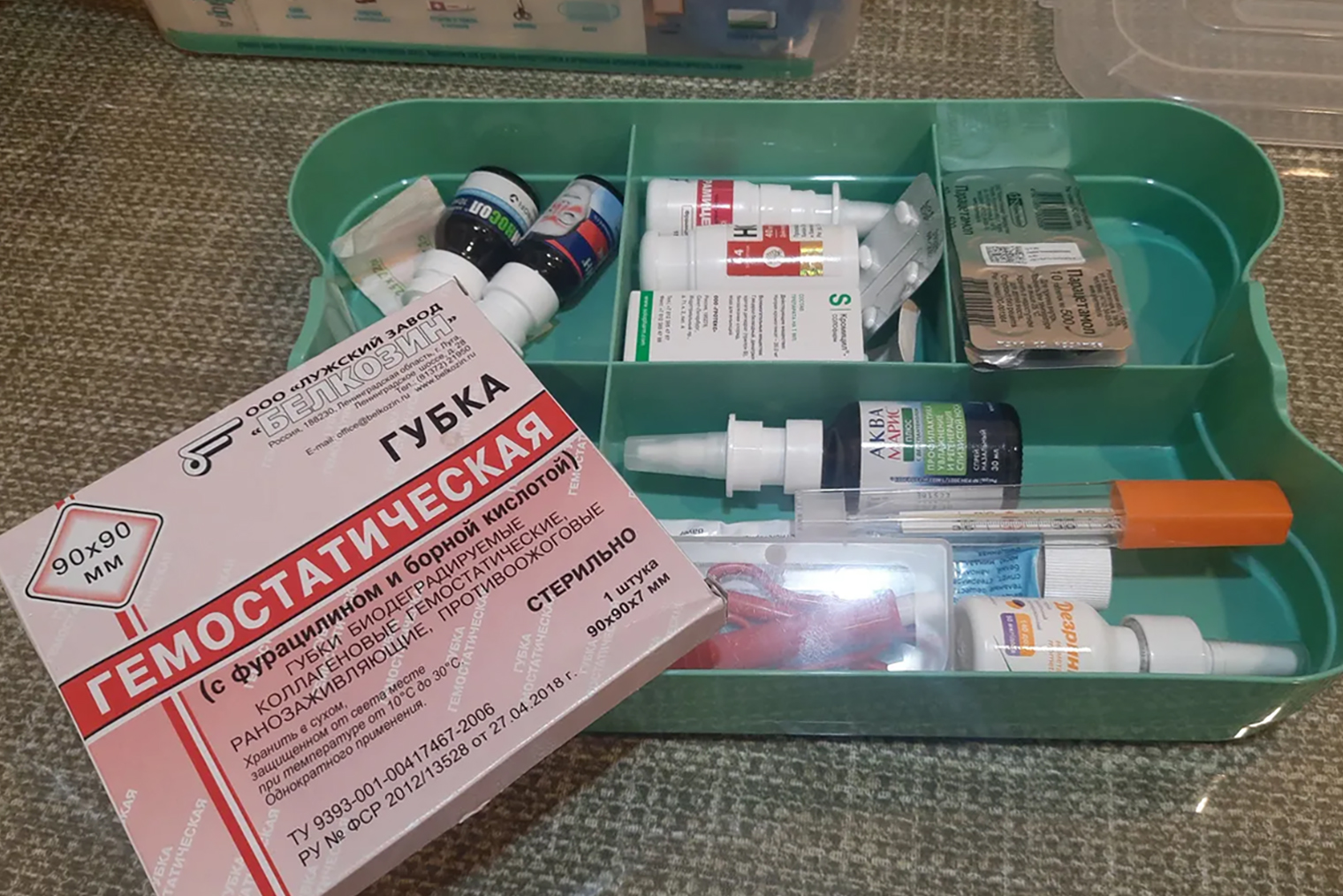 Большая часть лекарств лежит в специальном закрывающемся контейнере с крышкой. Часть препаратов храню в холодильнике, например «Фосфалюгель» в пакетиках, перекись водорода и мазь «Левомеколь».