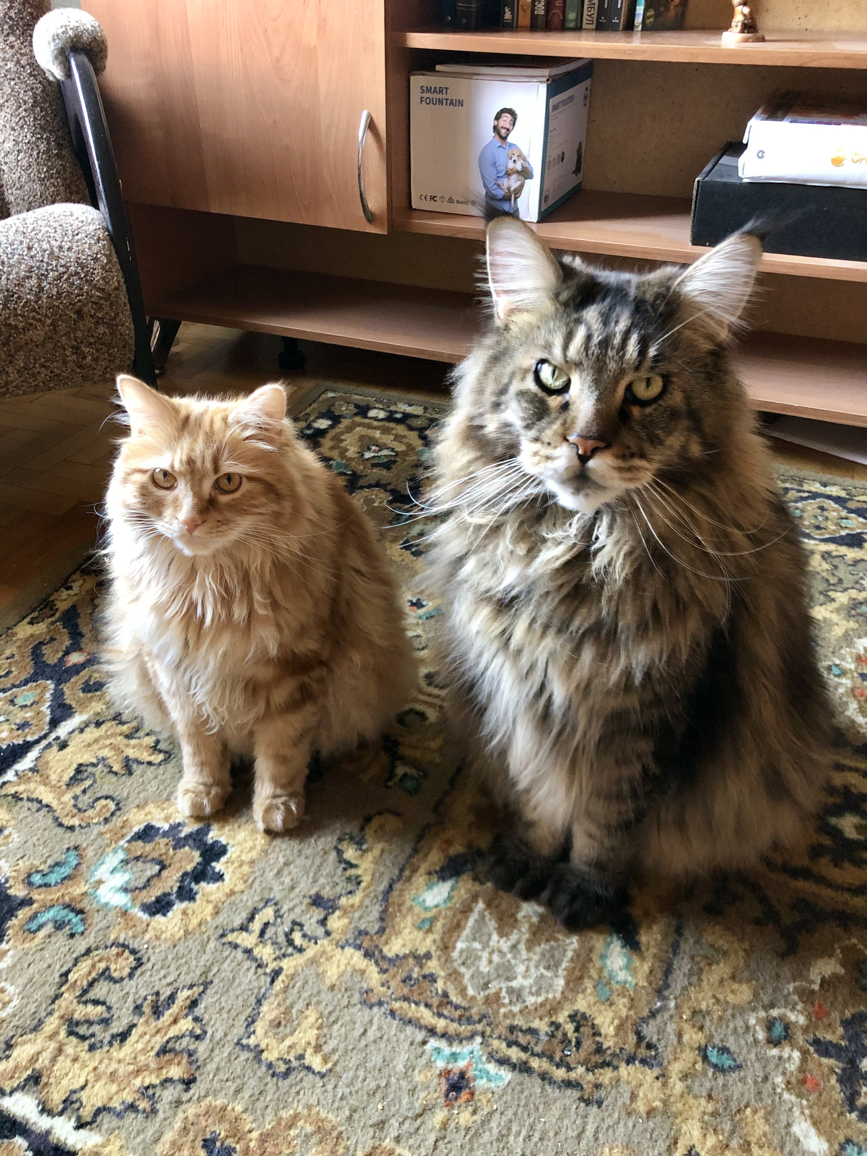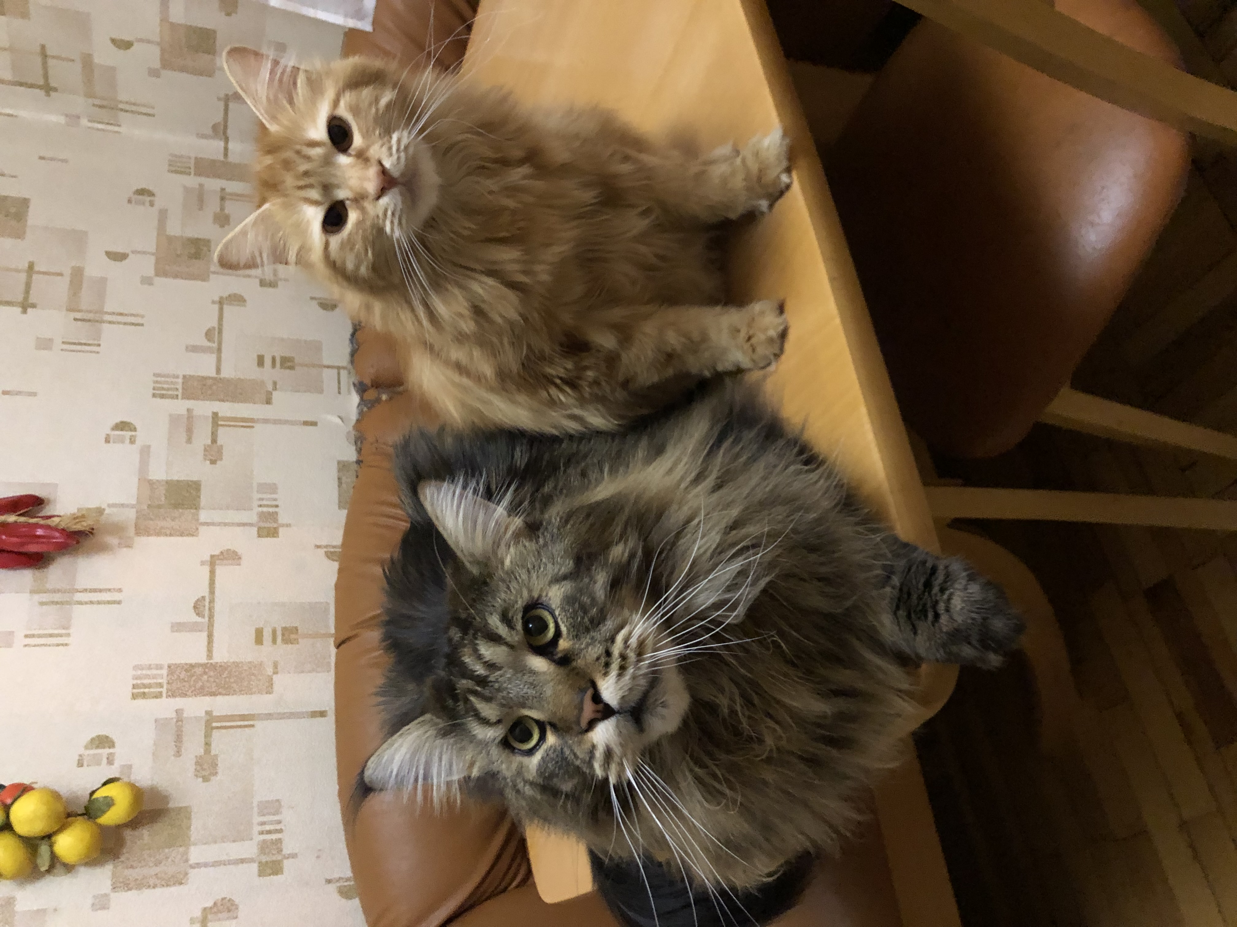 Фото питомцев: мейн-кун Артемий и курильский бобтейл Тимофей в ожидании еды