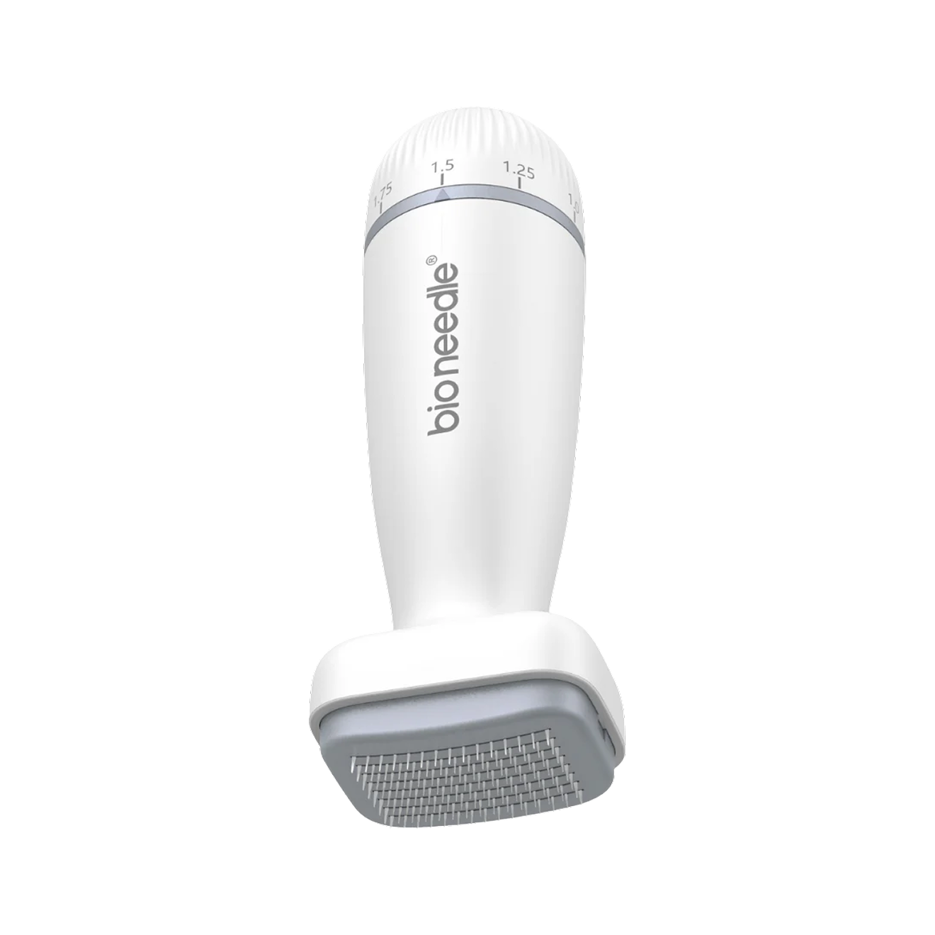 - Дермапен. Это прибор со сменными стерильными иглами. Он сам создает на коже небольшие проколы равномерными движениями вверх-вниз. Стержень с иглами узкий, поэтому дермапеном удобно прорабатывать крылья носа и другие труднодоступные участки.