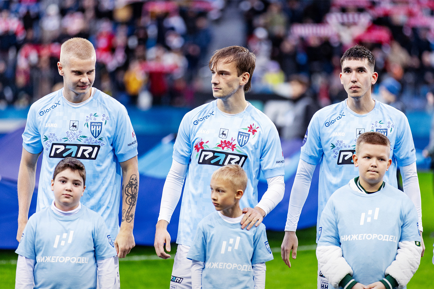 «Крепкая семья — непобедимая команда». В мае 2024 нижегородский футбольный клуб «Пари НН» вышел на матч с московским «Спартаком» в форме с вышитыми цветами. Каждый цветок символизировал реальные истории благополучателей НЖКЦ. Об этом рассказали в эфире «Матч ТВ» во время трансляции и следом в других крупных СМИ.