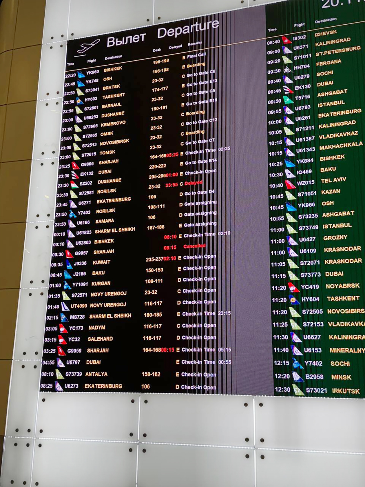 Позже мы выяснили, что утреннего рейса в 08:00 нет — это сбой, информация о нем с табло исчезла. Нам сказали, что места будут на рейсе через два дня. Правда, гарантий, что точно улетим, никто не давал.