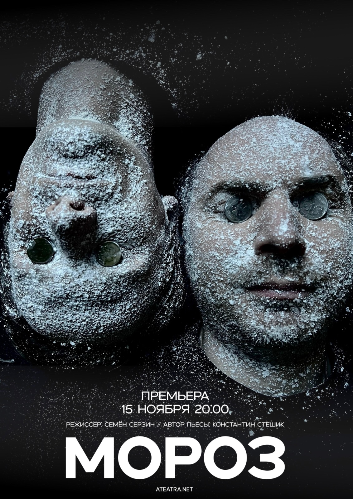 Одна из свежих работ театра — спектакль «Мороз» — интересна по нескольким причинам. Во-первых, скоро можно будет увидеть одноимённый фильм, четвертую работу Семёна Серзина в качестве кинорежиссера. Во-вторых, «Мороз» — пьеса, написанная тем же Константином Стешиком, белорусским драматургом, который написал пьесу «Друг мой», нашедшую яркое и весьма успешное отражение на сцене Невидимого театра. Моноспектакль «Друг мой» в исполнении чудесного Олега Рязанцева — замечательная лаконичная история о хрупкости всего живого, которая впечатляет снова и снова при каждом пересмотре. В-третьих, тандем Рязанцев-Касапов в «Морозе» — это на 100% интересное, увлекательное, талантливое и органичное сотворчество, уже проверенное общими работами в театре и в кино.