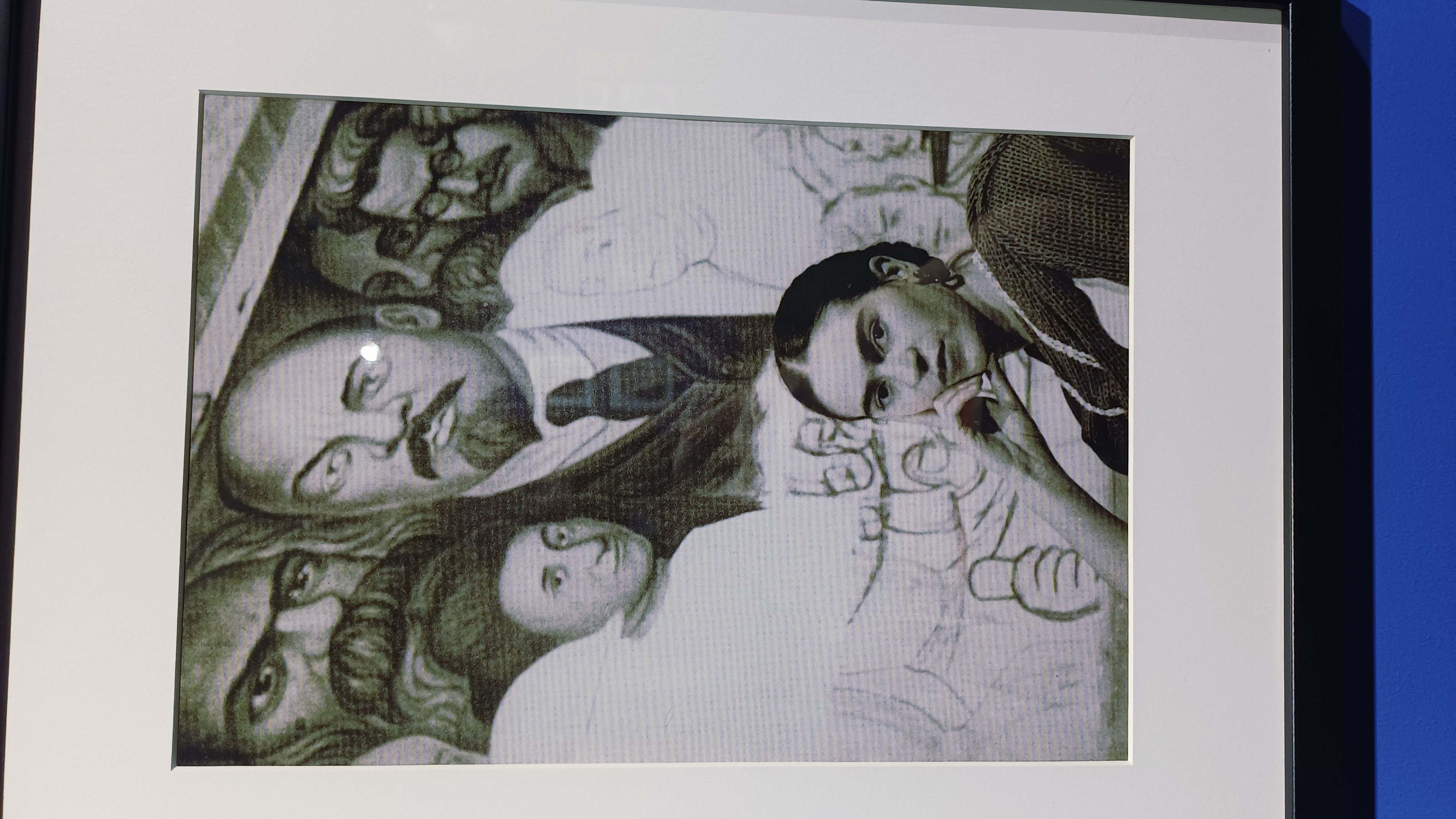 А в самом конце пространства — особенное место. Там, на уютных пуфиках, можно присесть и погрузиться в «живые полотна»: её картины медленно раскрываются перед тобой, а вокруг звучит тихий рассказ о ключевых моментах её жизни — от детства до последних лет. Это как смотреть старый фильм про близкого человека: тепло, грустно, вдохновляюще.