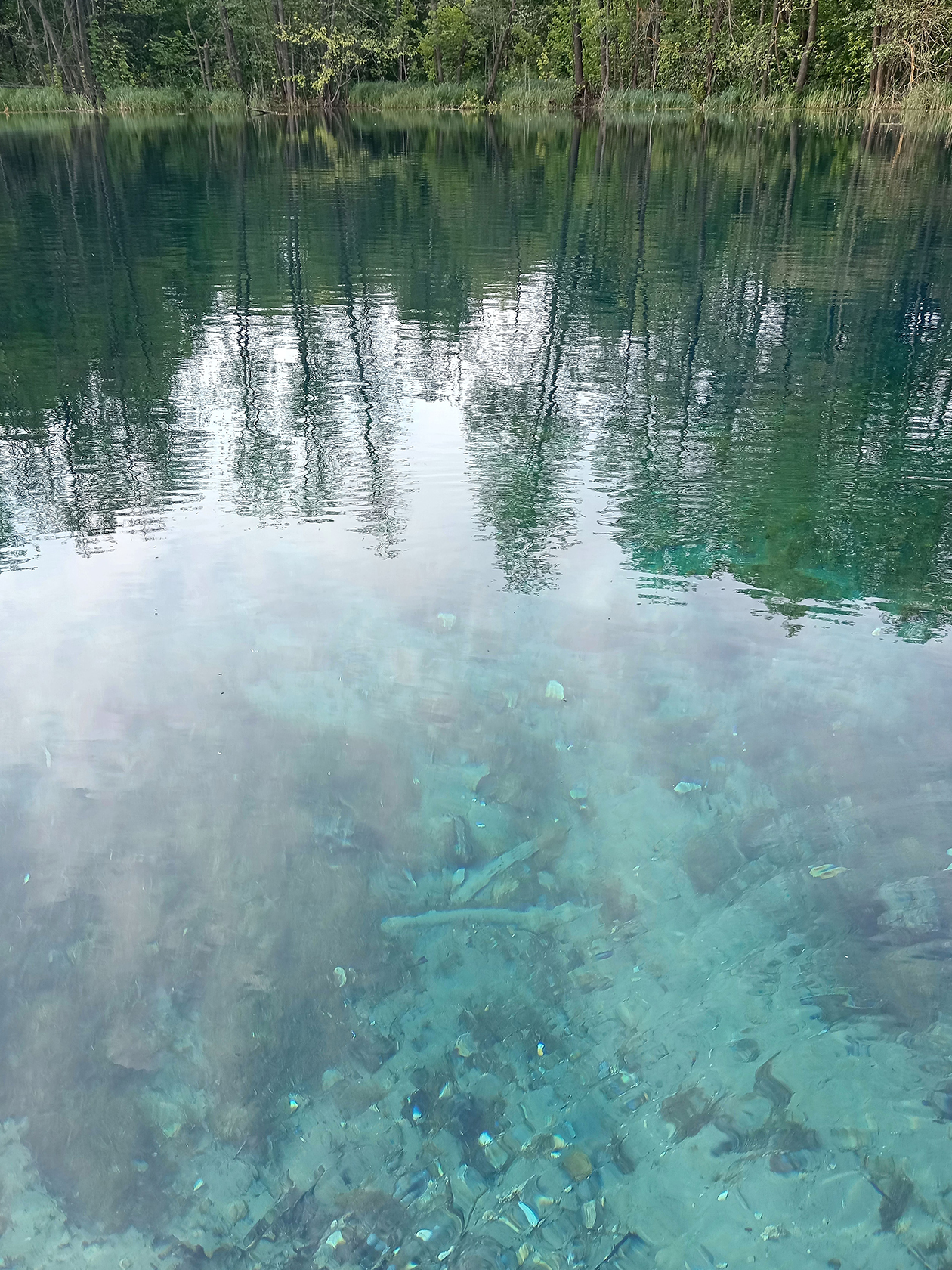 Увидели две пучины . Там вода казалась особенно голубой и прозрачной. Их глубина — 18 и 6 м. Говорят, это излюбленное место для погружений у дайверов. Вокруг озера проложены экотропы. На берегу есть деревянная смотровая площадка.