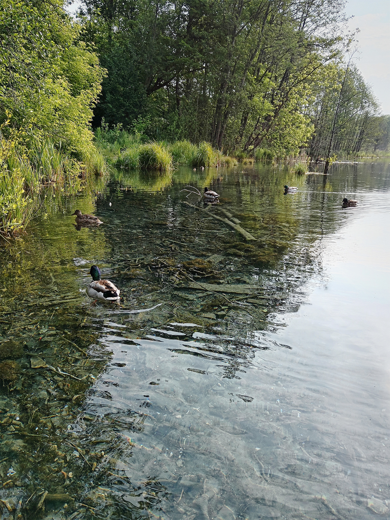 Во время прогулки мы наслаждались великолепными видами: чистейшая бирюзовая вода и густой зеленый лес по берегам. Наблюдали за уточками, которые плавали по озеру.