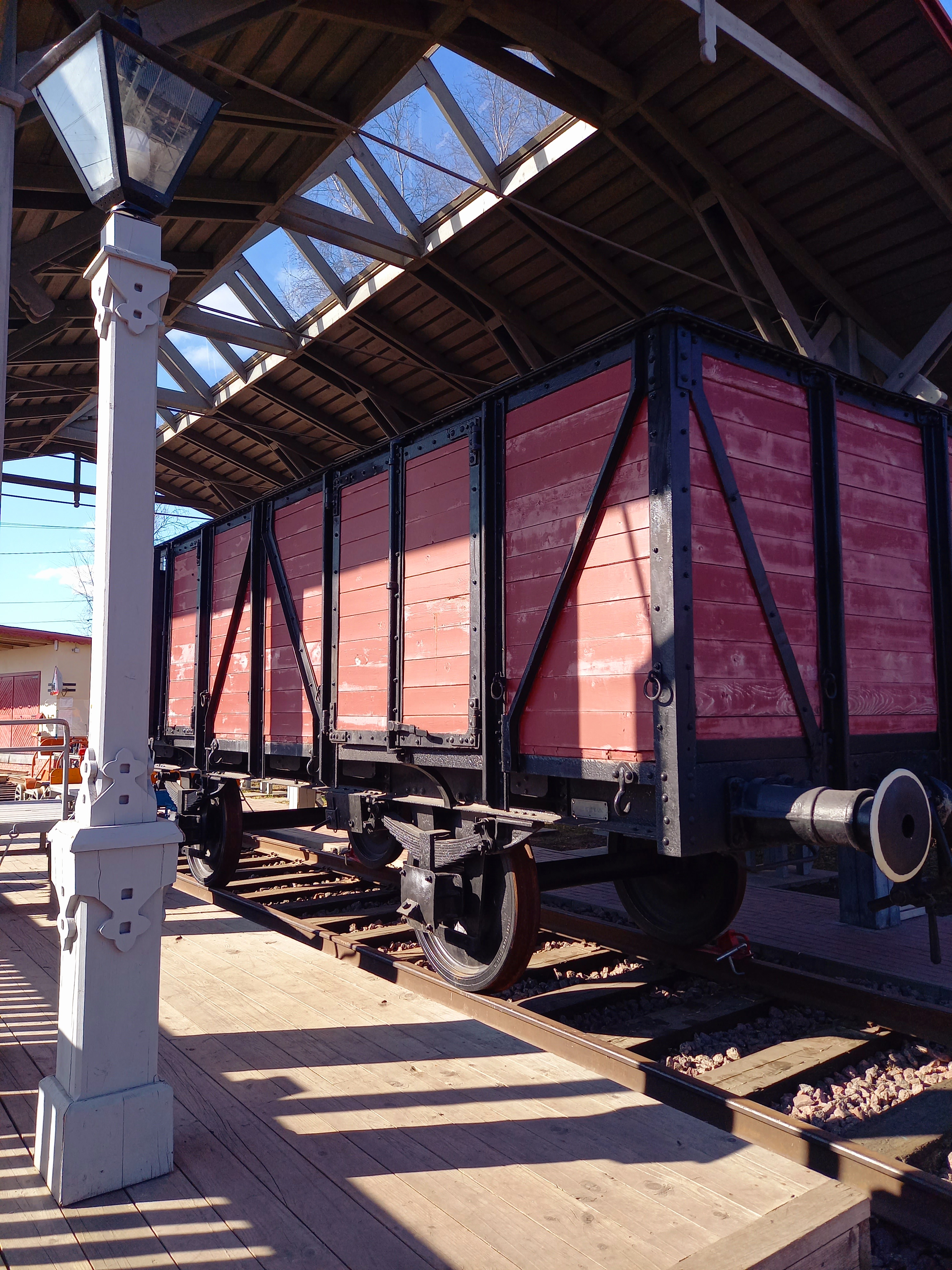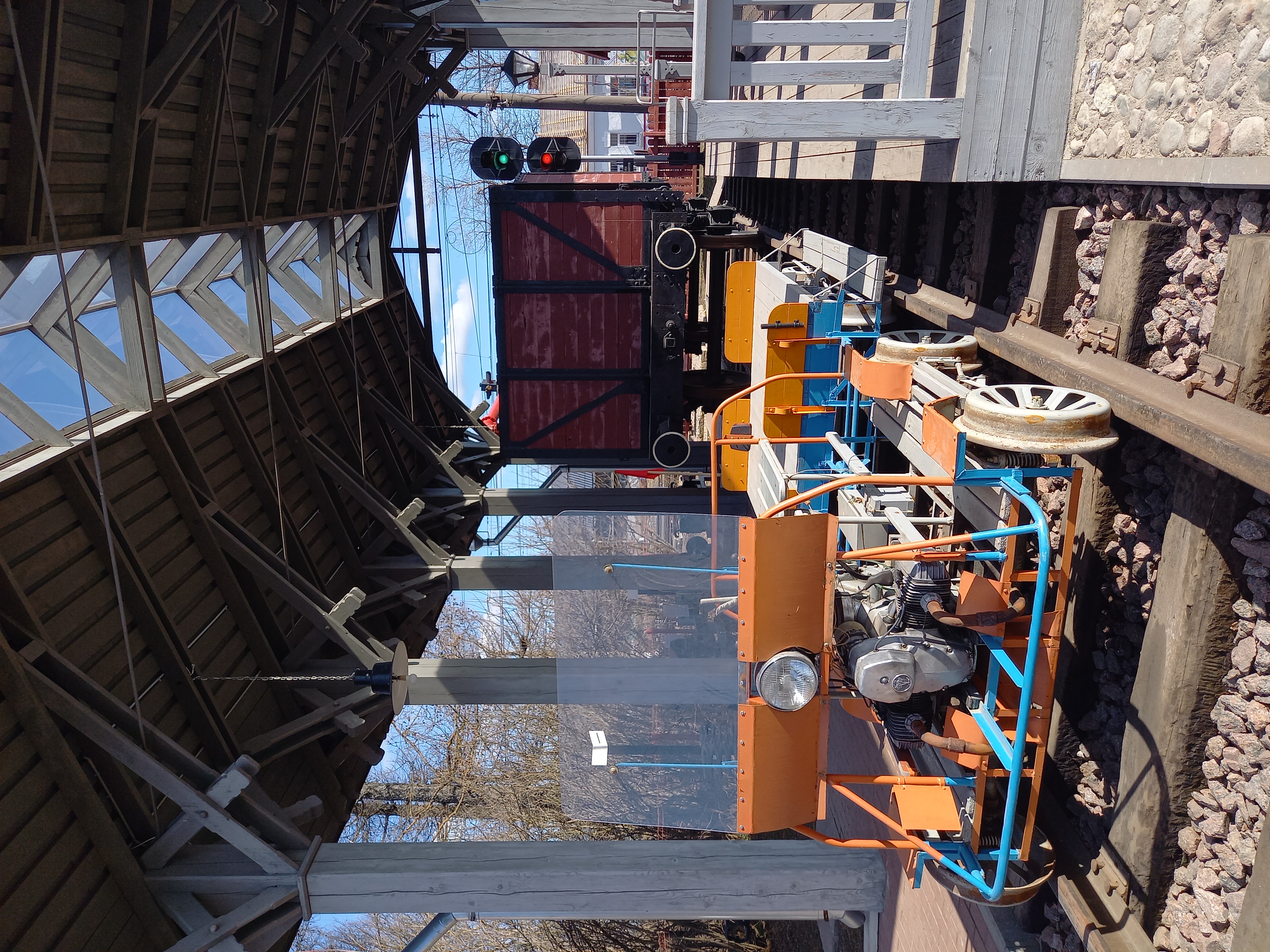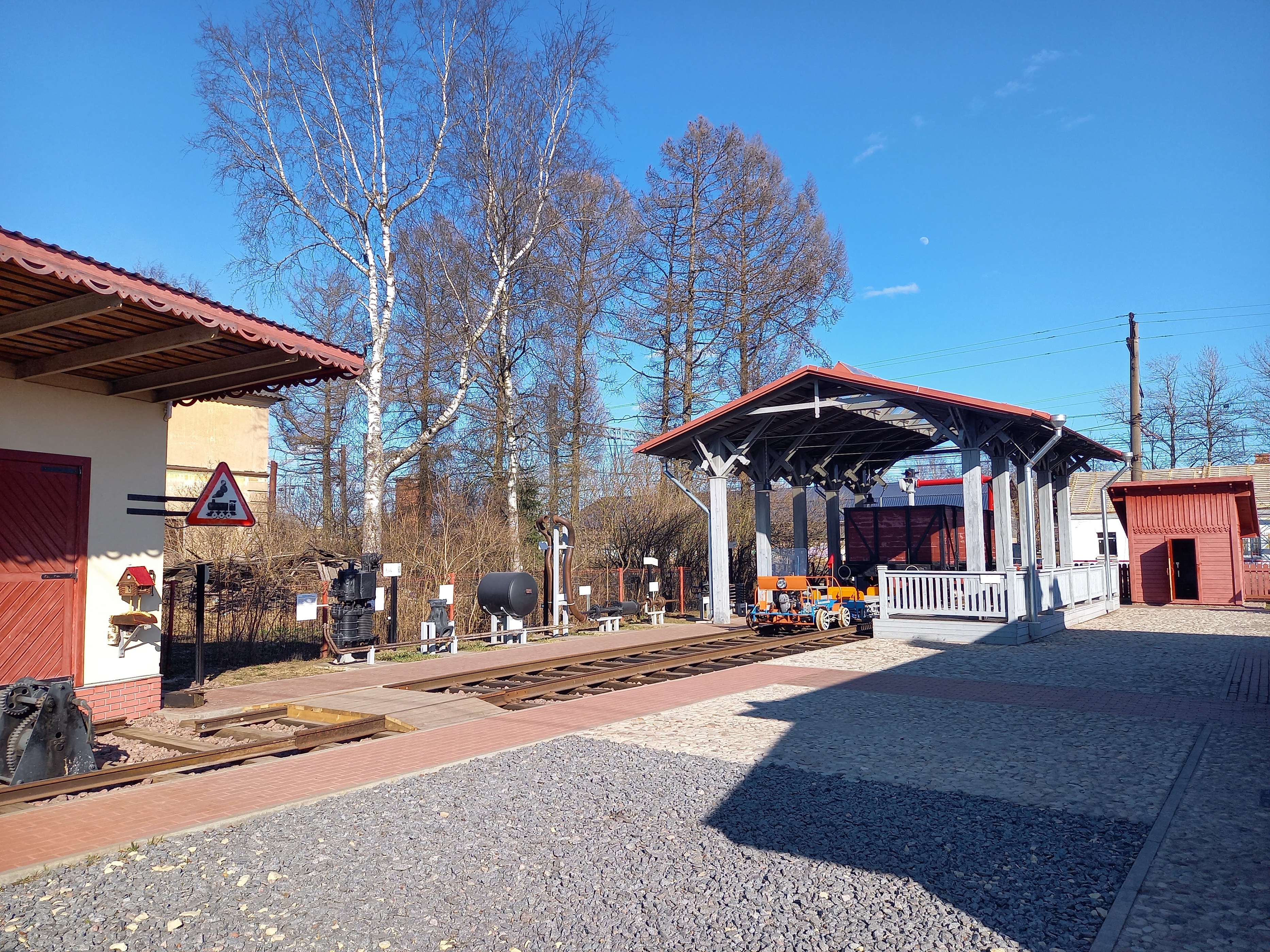 Уличная экспозиция разнообразна. Первым делом мы направились к паровозной колонке, как раз такими были оборудованы «Сиверская» и другие станции, через каждые 20 вёрст, данное расстояние могли проходить паровозы с запасом воды на заре развития железнодорожного транспорта. Колонка напоминает слона серого цвета, наверху горит светофорчик, указывающий на положение красного «хобота». Система подачи воды была придумана таким образом, что она не замерзала даже в суровые зимние морозы. Рядышком под навесом, напоминающий исторический облик станции, притаился двухосный грузовой вагон бельгийского производства, впереди него уникальный экспонат — действующая мотодрезина с вагоном скамьёй. На узкоколейных железных дрогах подобные встречаются часто, а вот под стандартную колею увидишь редко. Директор музея обмолвился, что в недалёком будущем будут организованы покатушки на этой «бешеной табуретке». Перед заключительным сюрпризом нам продемонстрировали разнообразие рельс, размеров, производителей, предназначения и любезно пригласили в буфет.