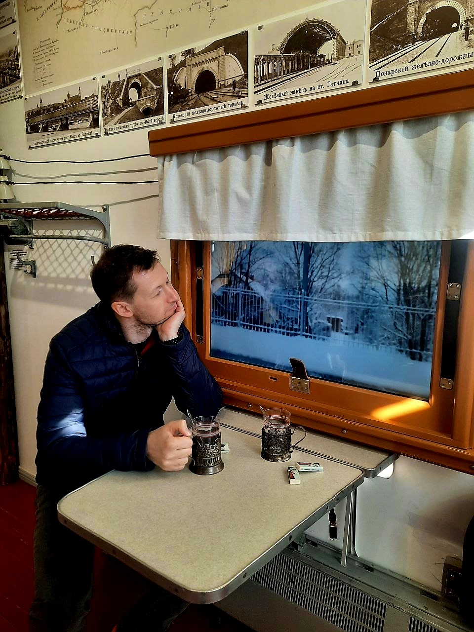 За стойкой буфета в белом халате и чепчике стояла та самая милая женщина, ранее выполняющая роли администратора и кассира. Нам любезно было предложено выбрать подстаканник на свой вкус, пакетик чая и пройти к «титану» наполнить ёмкость горячей водой. В этот момент директор завёл пластинку на патефоне, под стук колёс проносящихся электричек и виниловой музыки мы испили чай с вкуснейшими сушками.