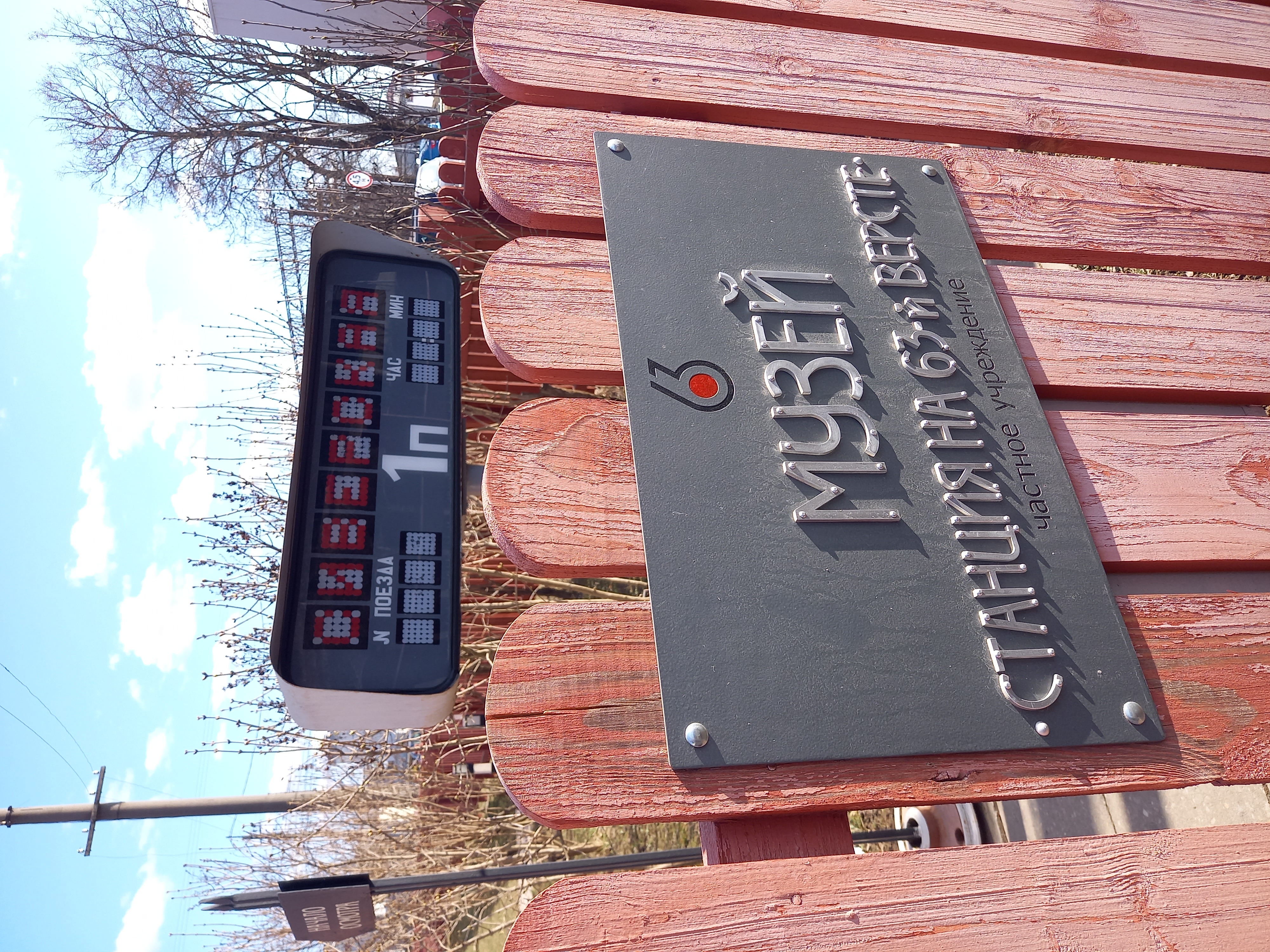 У входа в музей установлено платформенное табло, удостоверяющее, мы прибыли на нужную станцию. До начала экскурсии ещё оставалось минут пятнадцать, это позволило немного оглядеться. Тут и там нас встречали разные железнодорожные артефакты, которые будоражили внутреннего ребёнка, порой было ощущение, что меня перенесли в одну из локаций детской железной дороги. Но оклик администратора быстро меня вернул в реальность, женщина попросила перейти в здание, там и начнётся программа.