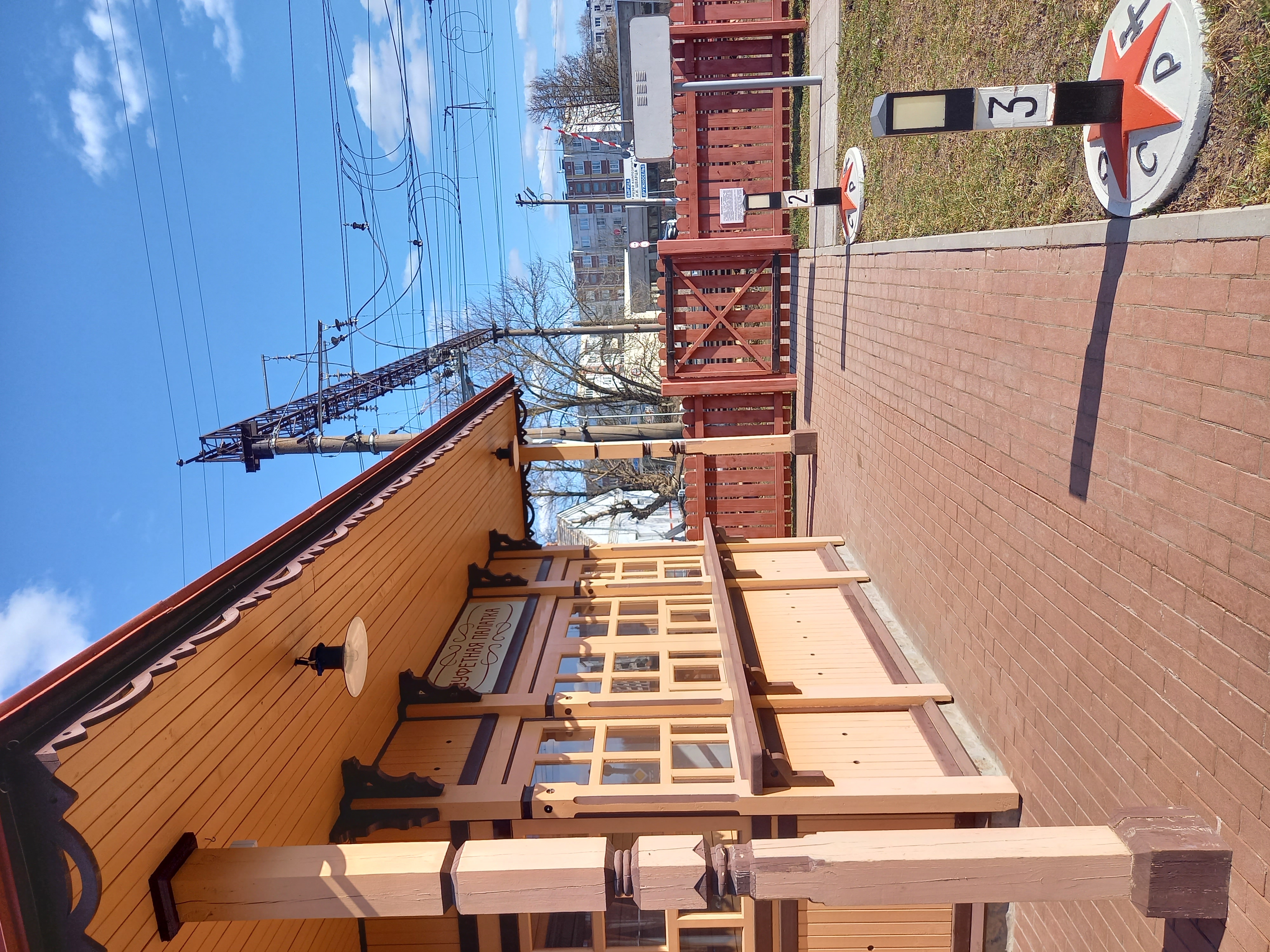 Если вы катались в «кругломордых» электричках, то должны помнить, точнее ваша пятая точка каково это ехать несколько часов на деревянной лавке. Здесь ностальгию можно воплотить в жизнь и повторить знакомые ощущения. В этой же комнате взгляд экскурсантов привлёк к себе металлический ящик с красной звездой, извилистой канавкой и металлическими цилиндрами в ней. Этим прибором оказалась жезловая система, таким способом связи по сей день пользуются для обеспечения безопасности при движении поездов на однопутных участках железной дороги. Пора выходить на улицу и немного согреться на весеннем солнышке, в помещении прохладно, будьте готовы, если соберётесь сюда в осенне-весенний период.