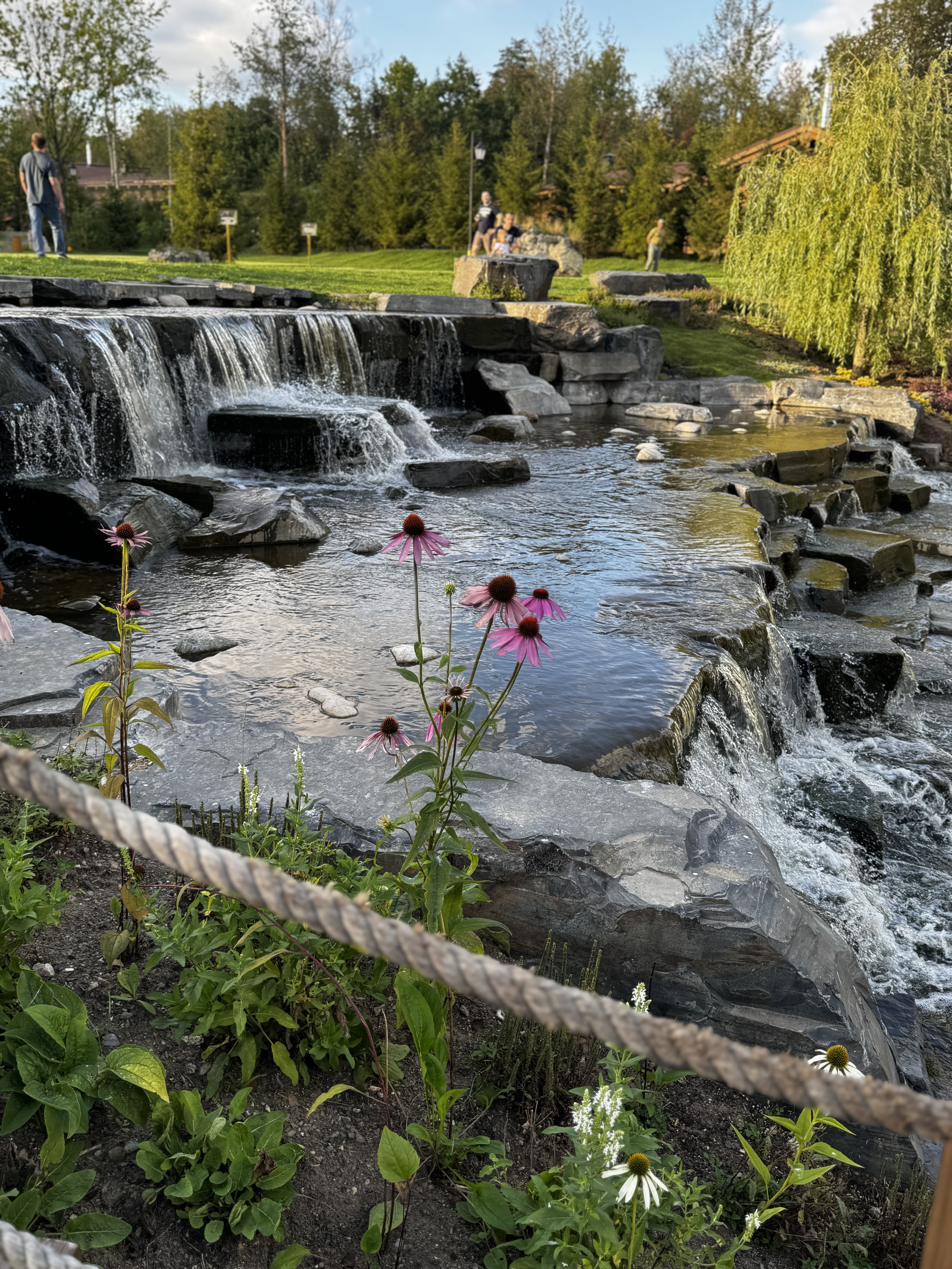 Место очень похоже на Карелию, есть даже водопад, парк очень уютный, ухоженный и охраняемый. Много красивых птичек: цапли, утки, которых очень берегут. Приятная атмосфера. Дорожки из камней, есть ресторан.