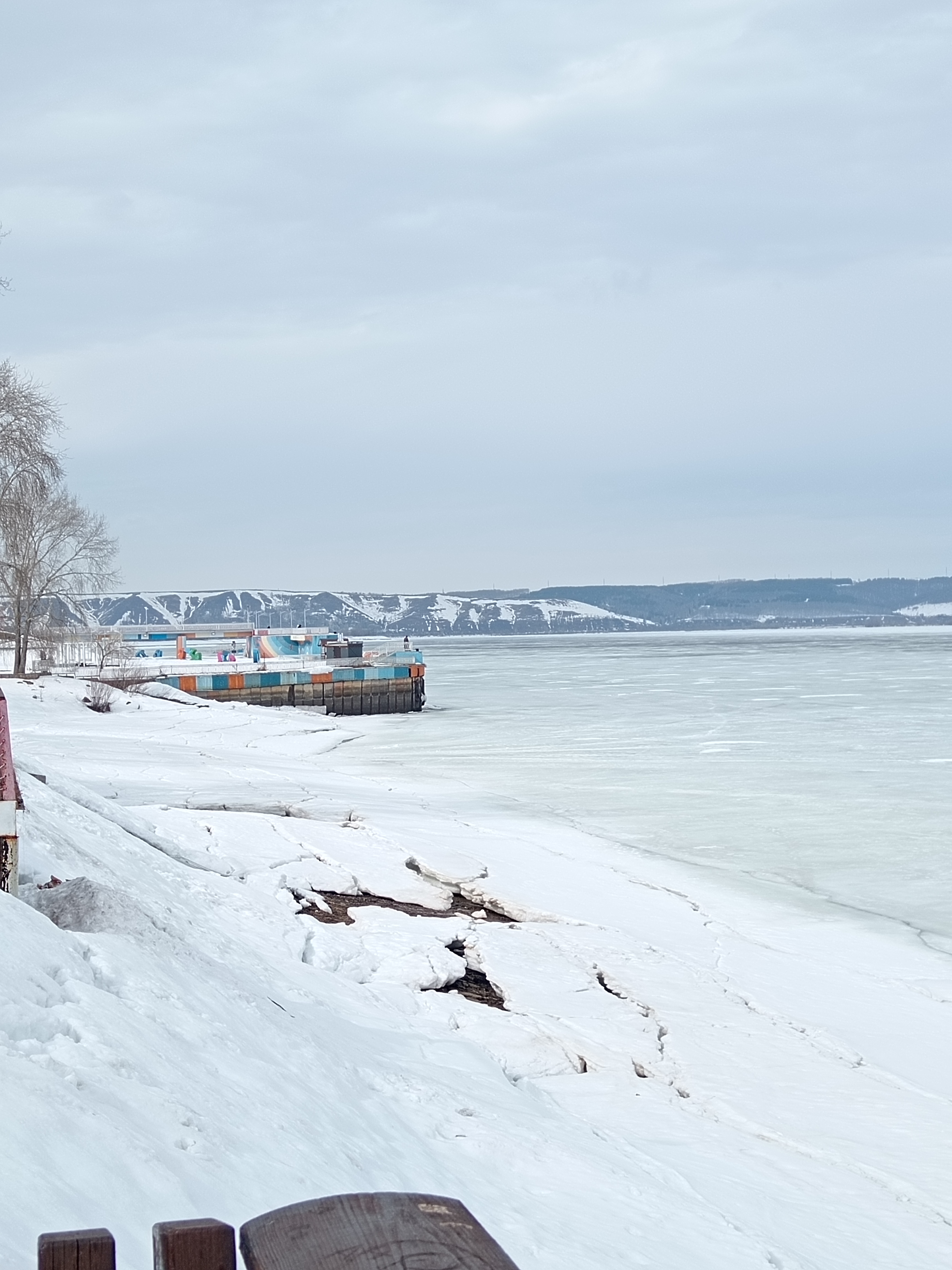 4️⃣ Набережная реки Камы. В тот день я посетила Красный Ключ с целью полюбоваться на Каму, не пошла ли она? Вдали уже виделось, что река открывается, по краям у берегов трещины льда(в итоге пошла она на следующий день после моей поездки🤭). Летом здесь особенно многолюдно. Набережная благоустроена, есть платный и бесплатный пляжи, продаются мороженое, варёная кукуруза, сахарная вата и тд. С открытием навигации и до поздней осени причаливалют теплоходы и для гостей города организуются экскурсии.