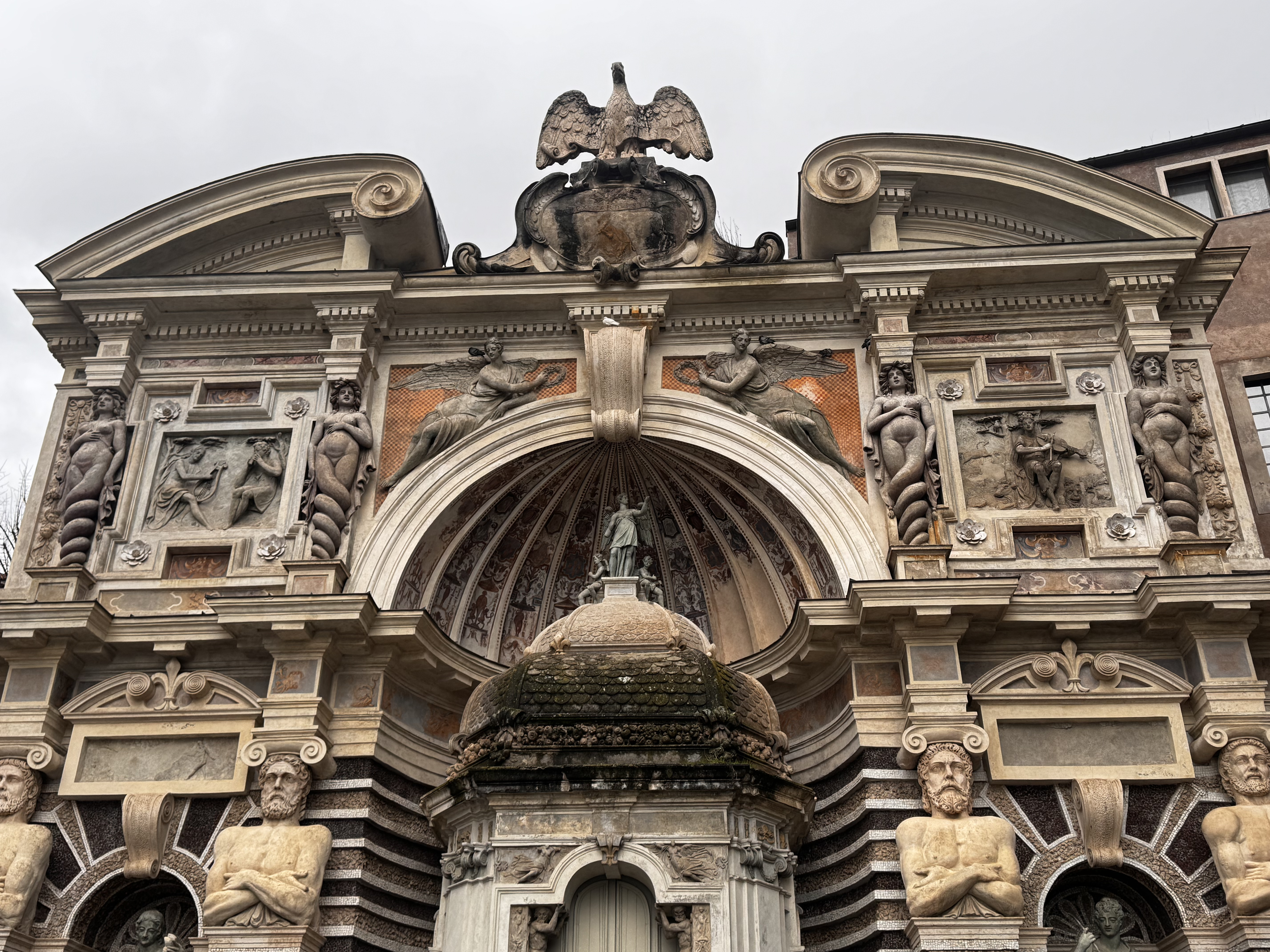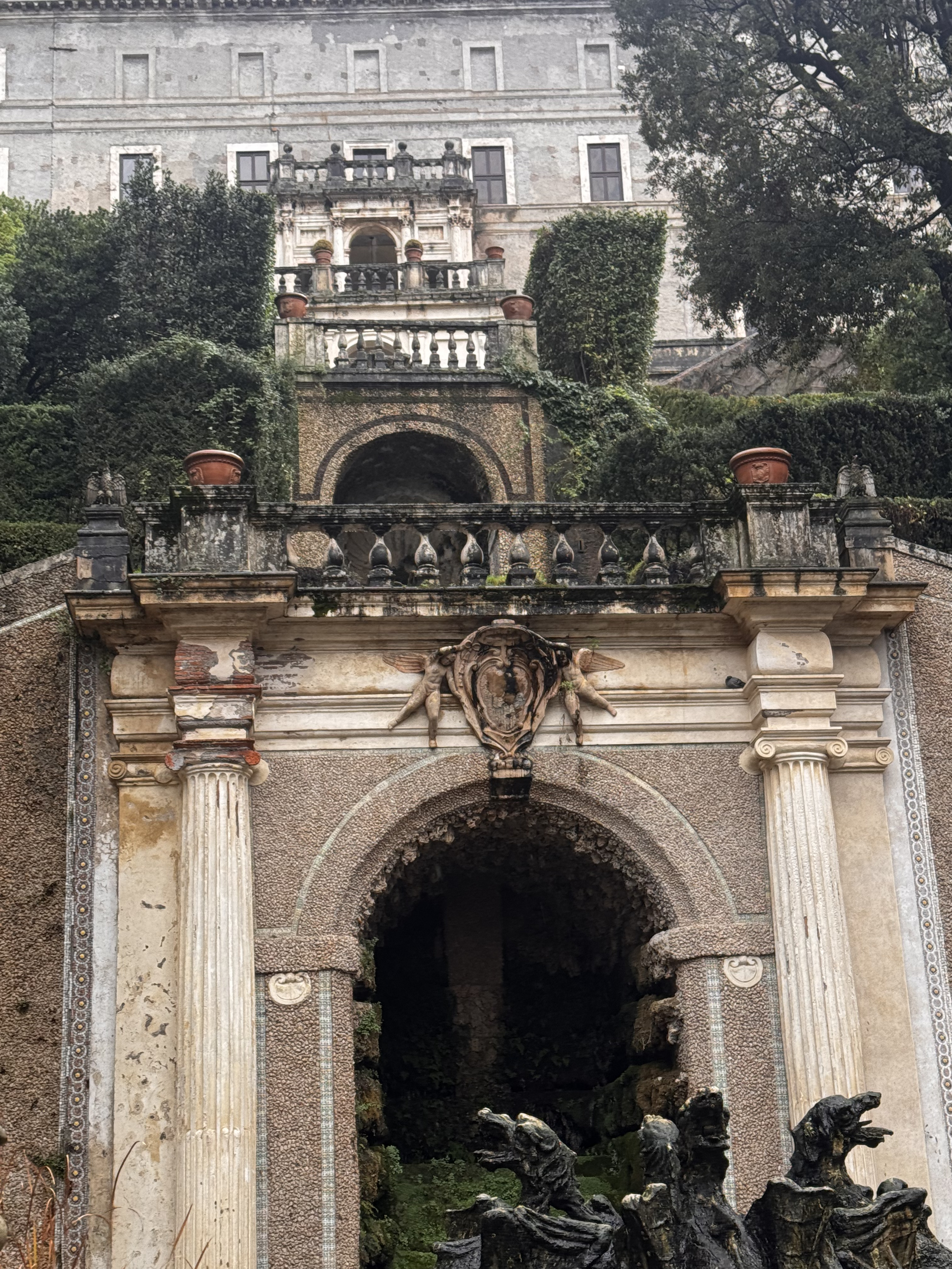 Главная гордость Виллы д’Эсте. Фонтан Нептуна XVII века — точка притяжения всех камер. Даже без воды масштаб впечатляет. Да, кое-где плесень, да, время берёт своё, но атмосфера остаётся.