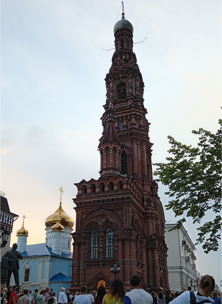Одна из достопримечательностей улицы-Колокольня Богоявленского собора — самая высокая в городе. Высокая красная башня находится в самом центре Казани и выступает "маяком" для тех, кто заблудился.