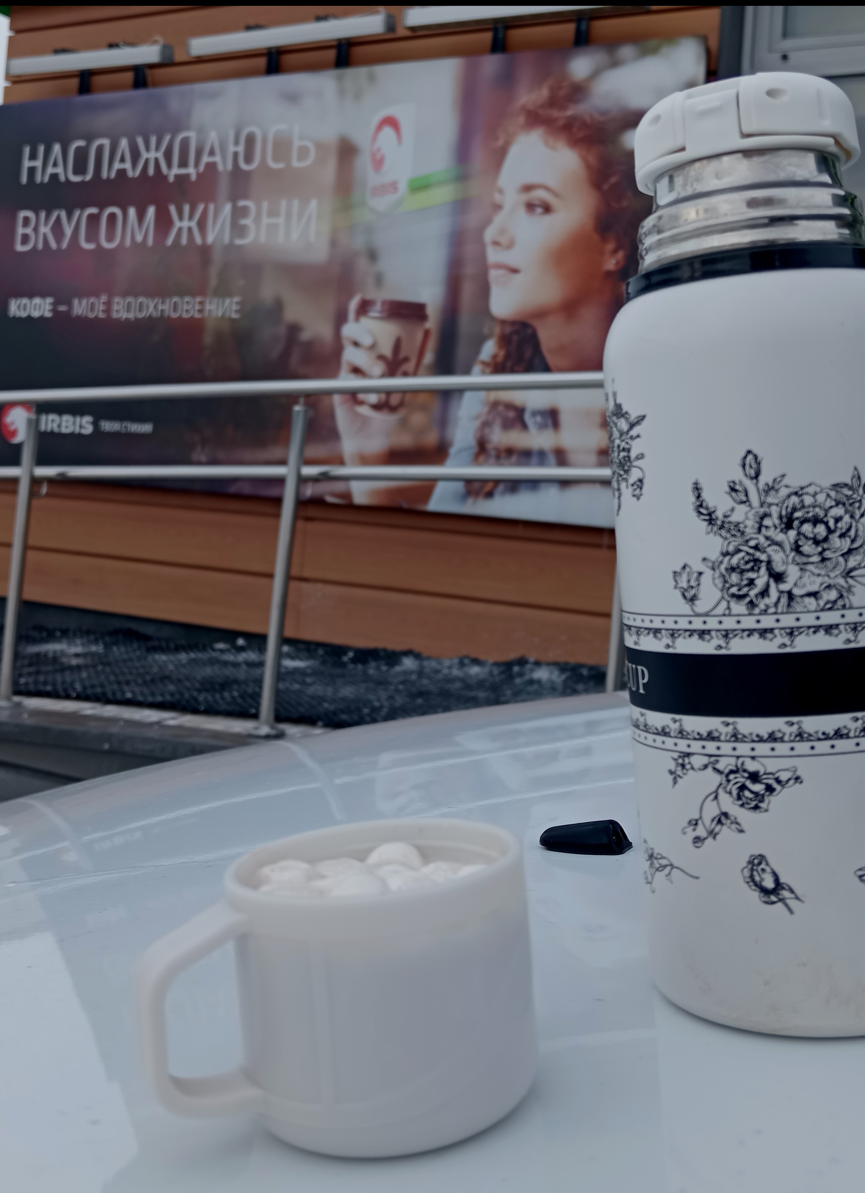 Обратной дорогой ехали через Челны, заехали на заправку, чтоб наконец испробовать свой домашний горячий шоколад из термоса 🫠