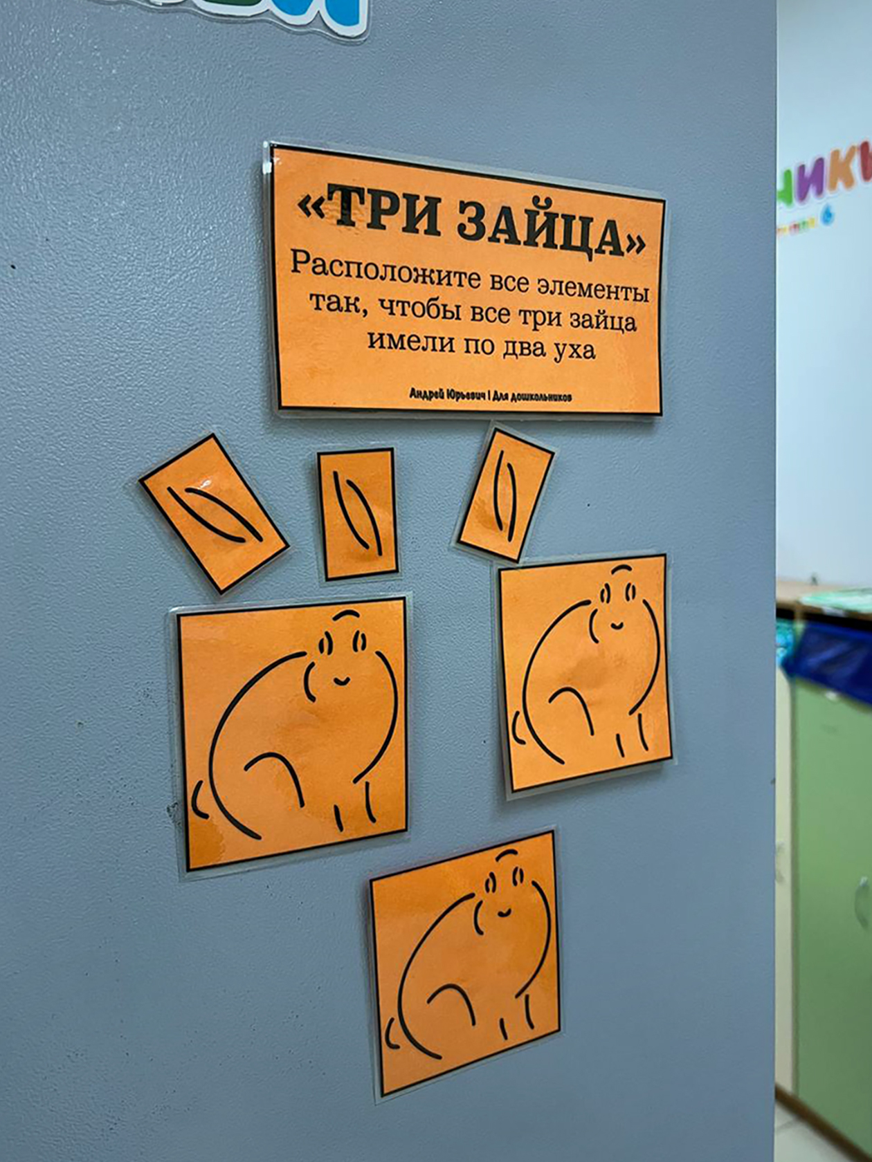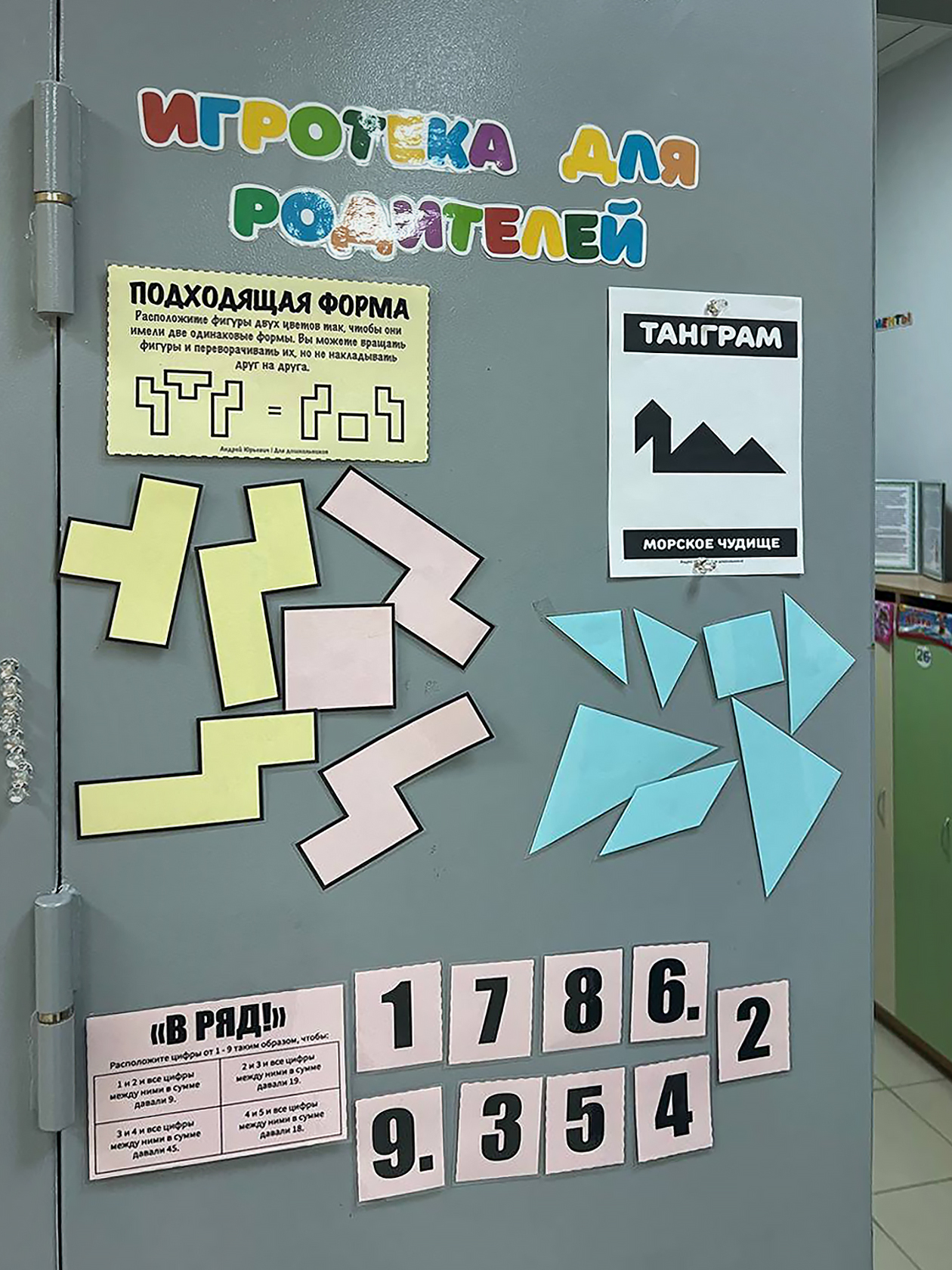 В сообществе я делюсь приемами, которые использую в работе. Например, у меня есть проект «Игры на входной двери». Его суть в том, что каждую неделю я вывешиваю на дверь группы игры, которые нахожу в интернете или книгах 1990-х годов. В ожидании, пока ребенок переоденется, родители могут поиграть. И они играют! Иногда к ним присоединяются и ребята. Считаю, что это дополнительный способ взаимодействия детей и взрослых.