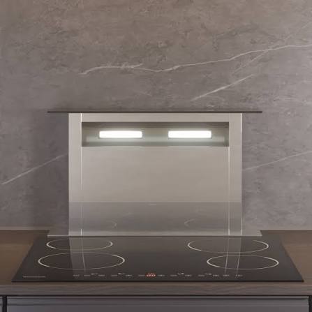 Встраиваемые в столешницу — это вообще магия. Вытяжка поднимается из-за плиты и прячется обратно.