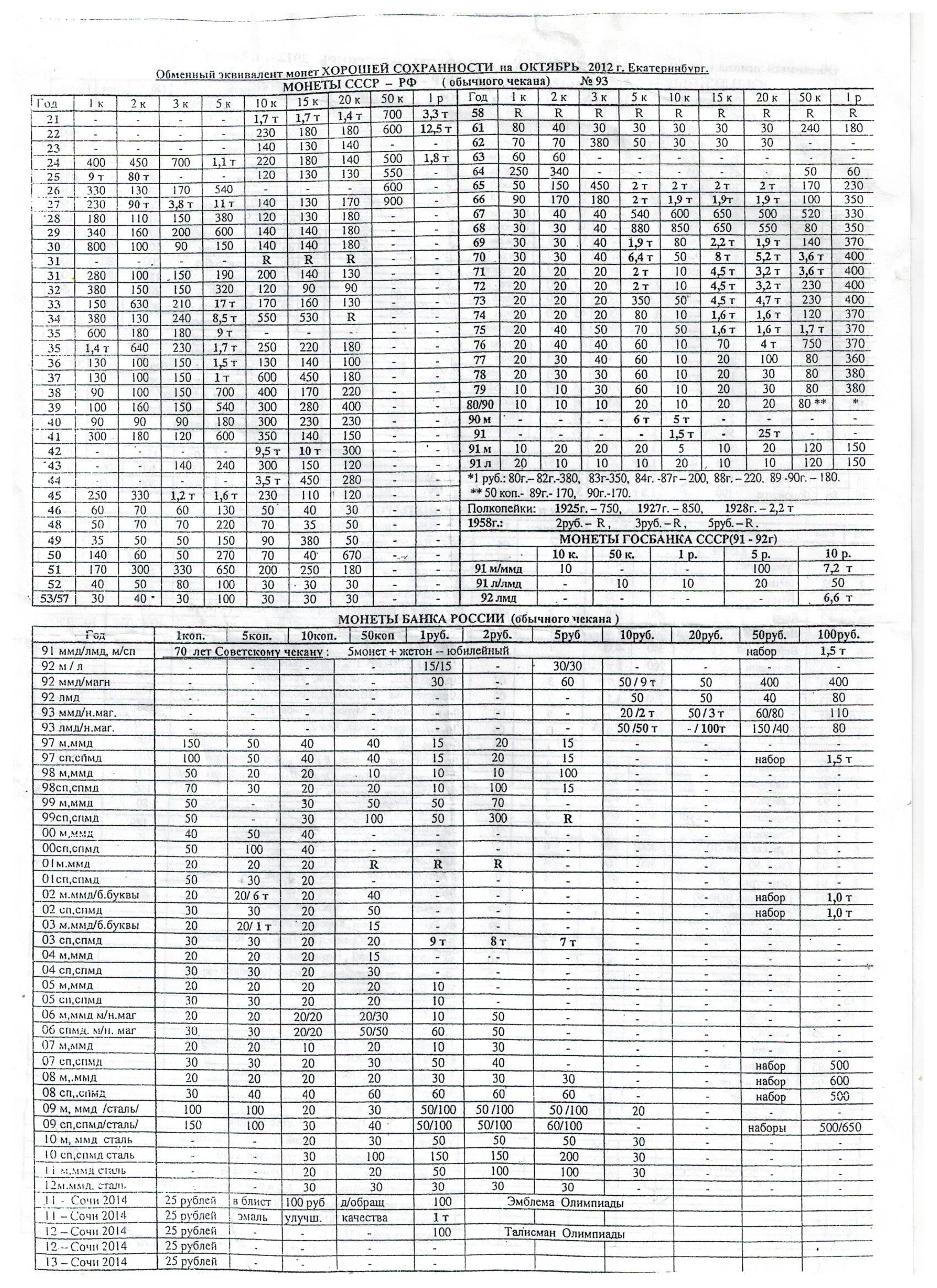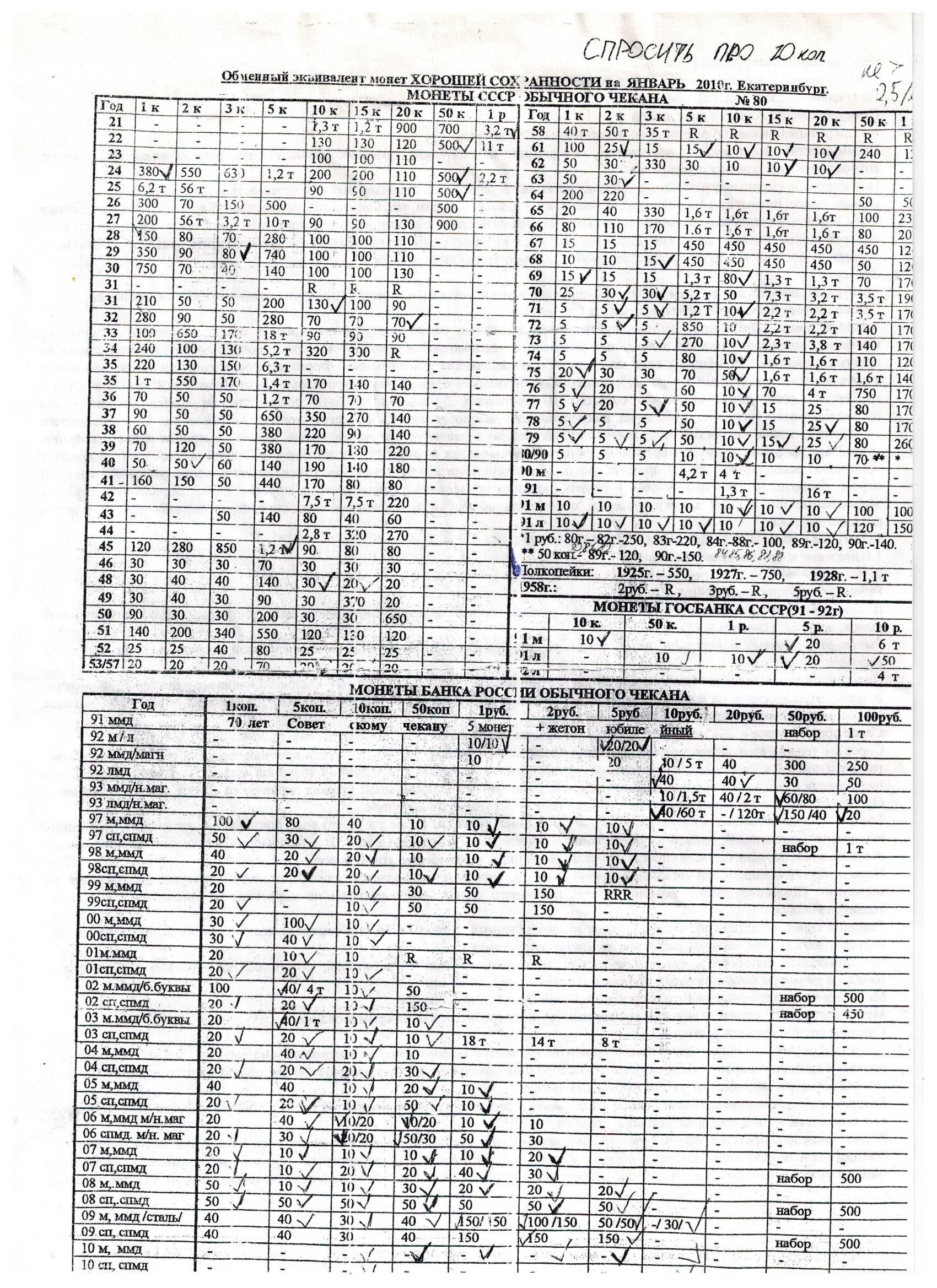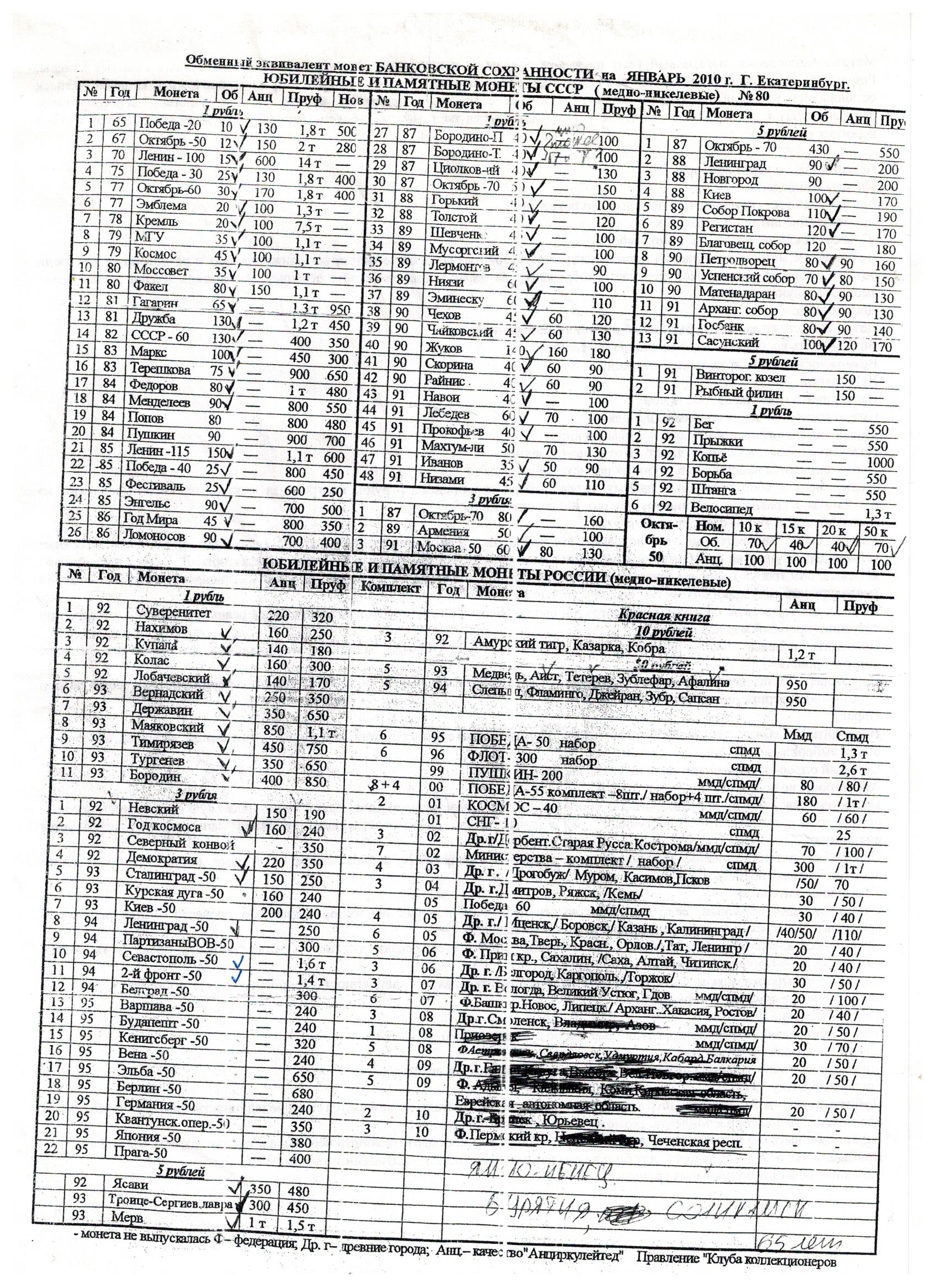 Удивляться, собирать, обмениваться было жутко интересно. Иногда, что-то покупал у старьёвщиков или при обмене повторных монет с доплатой. Делалось это в детские и юношеские годы на глазок, пока весной 2010 года не попал мне в руки обменный эквивалент монет СССР и России за январь 2010. Да, он относился только к части коллекции, но давал почву для оценки.