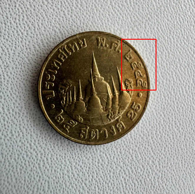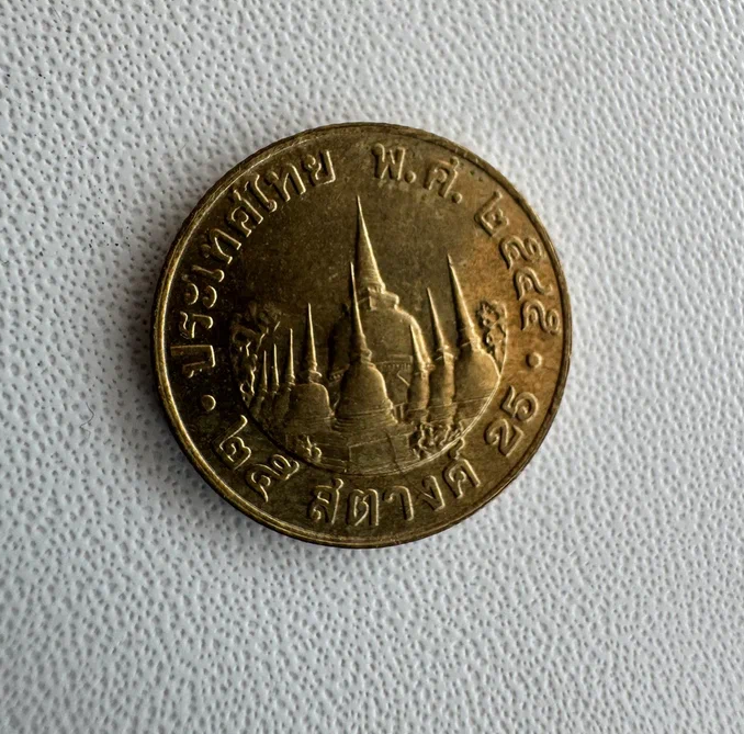 Например, вот 25 сатангов (сатанги соотносятся к батам, как копейки к рублям) 2002 года, но в тайском исчислении нужно прибавлять 543 года, и тогда выйдет не 2002, а 2545 год.