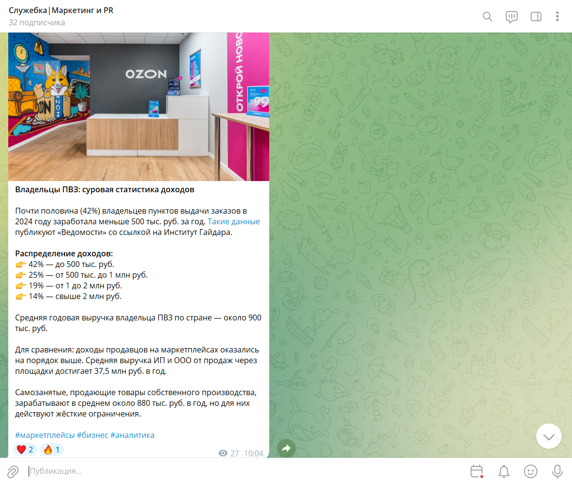 Телеграм-канал, о котором идет речь, называется «Служебка|Маркетинг и PR».