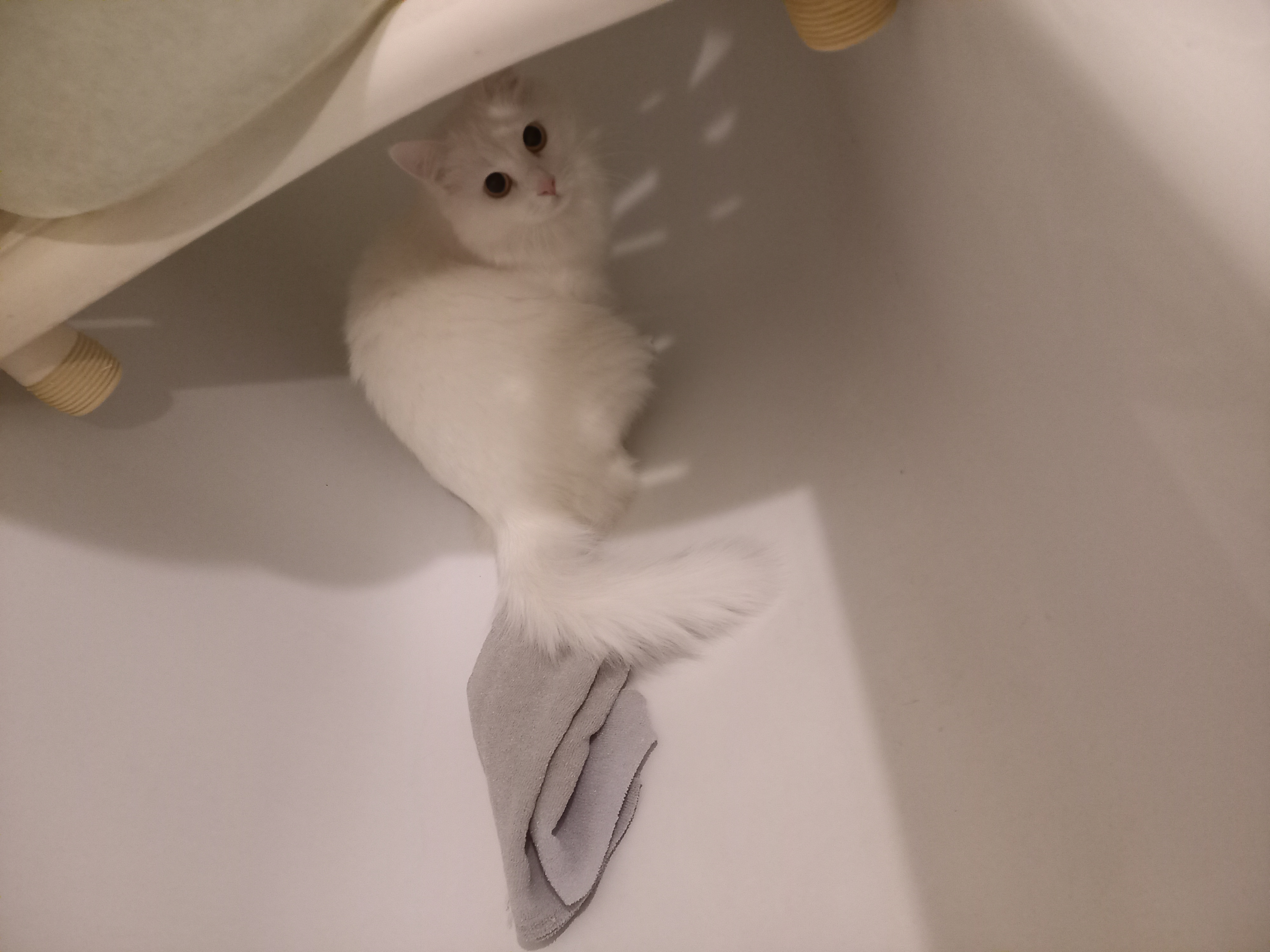 Фото питомца: белая кошка Василиса сидит в белой ванне