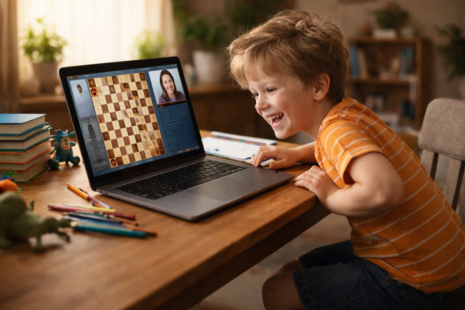 Если совсем коротко, онлайн-шахматы в 5–7 лет обычно подходят ребёнку, если ему интересна игра: он смотрит на доску, слышит педагога, делает ходы и не бросает занятие после первой трудности.