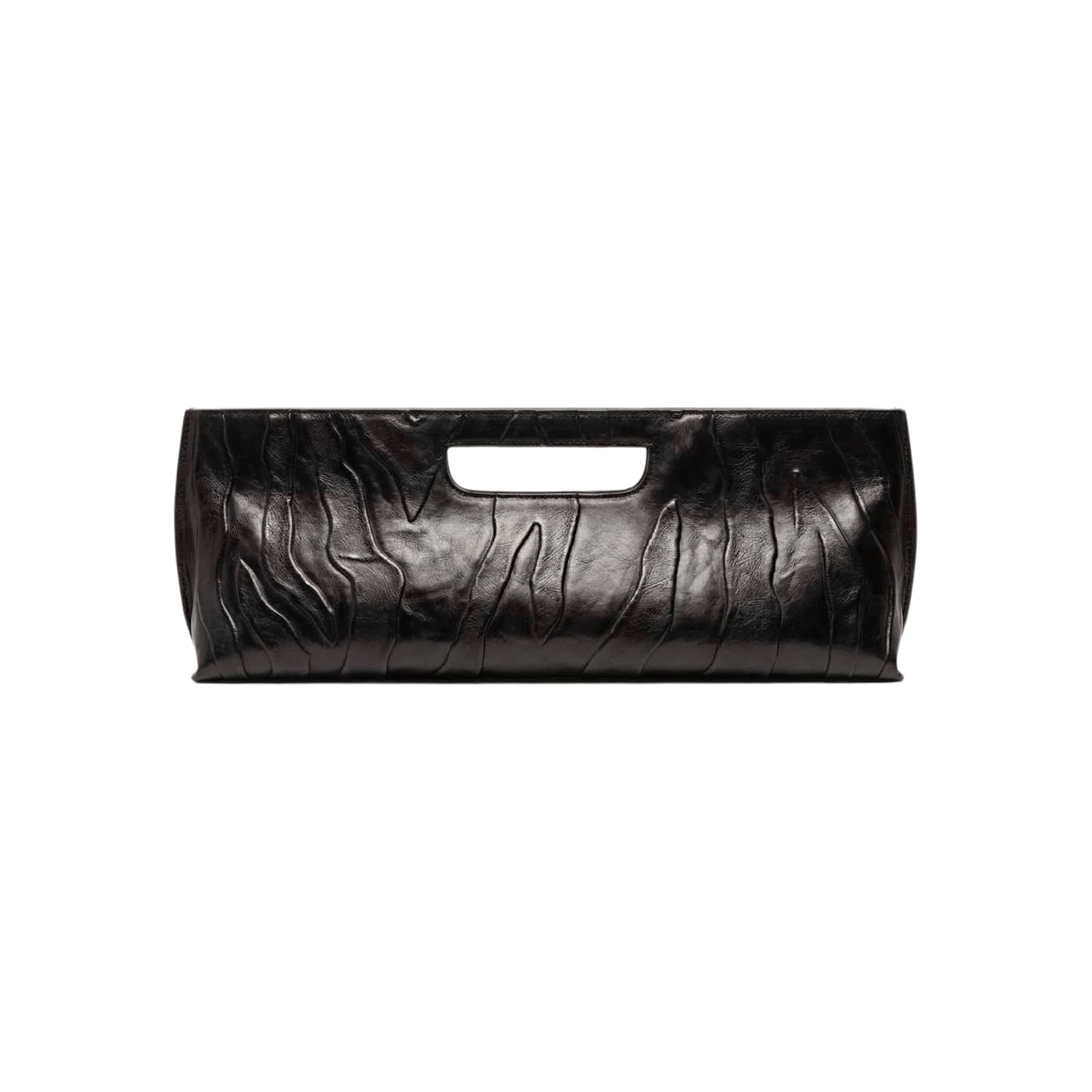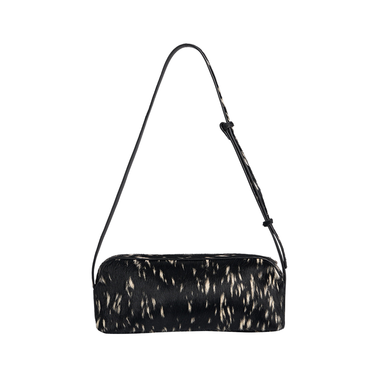 Эта сумка Drop the Bag — двусторонняя: на одном боку классический принт «зебра», причем с ворсом, а на другом — тот же паттерн, но монохромно-черный и из гладкой кожи. Модель на удивление длинная — 42 см, — что увеличивает ее функциональность: сумка сойдет и за клатч, и за повседневный вариант