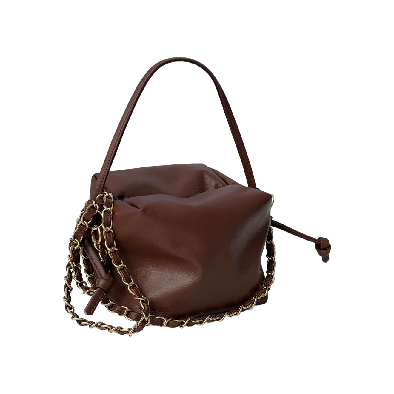 В зависимости от того, затянете вы шнурок или расслабите, эта сумка может напоминать ридикюль без фермуара или кисет — оба варианта в 2026 году особенно актуальны. Выделяется и вытянутая форма-торба: это выглядит интересно и без привязки к трендам