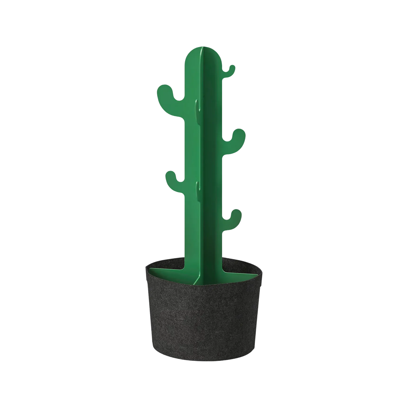 Больше напоминает декорации к мультфильмам о Диком Западе, чем вешалку. На деревянном кактусе достаточно ветвей, чтобы не складировать одежду на стуле. А в текстильном кашпо, разделенном на четыре секции, можно рассортировать мелочи — от кепок до игрушек