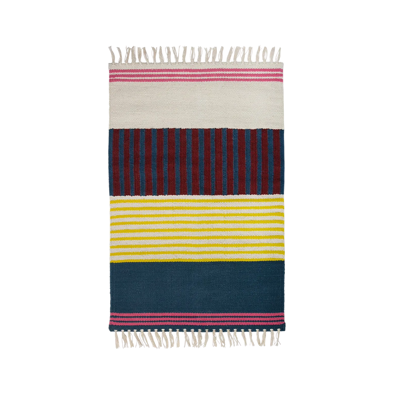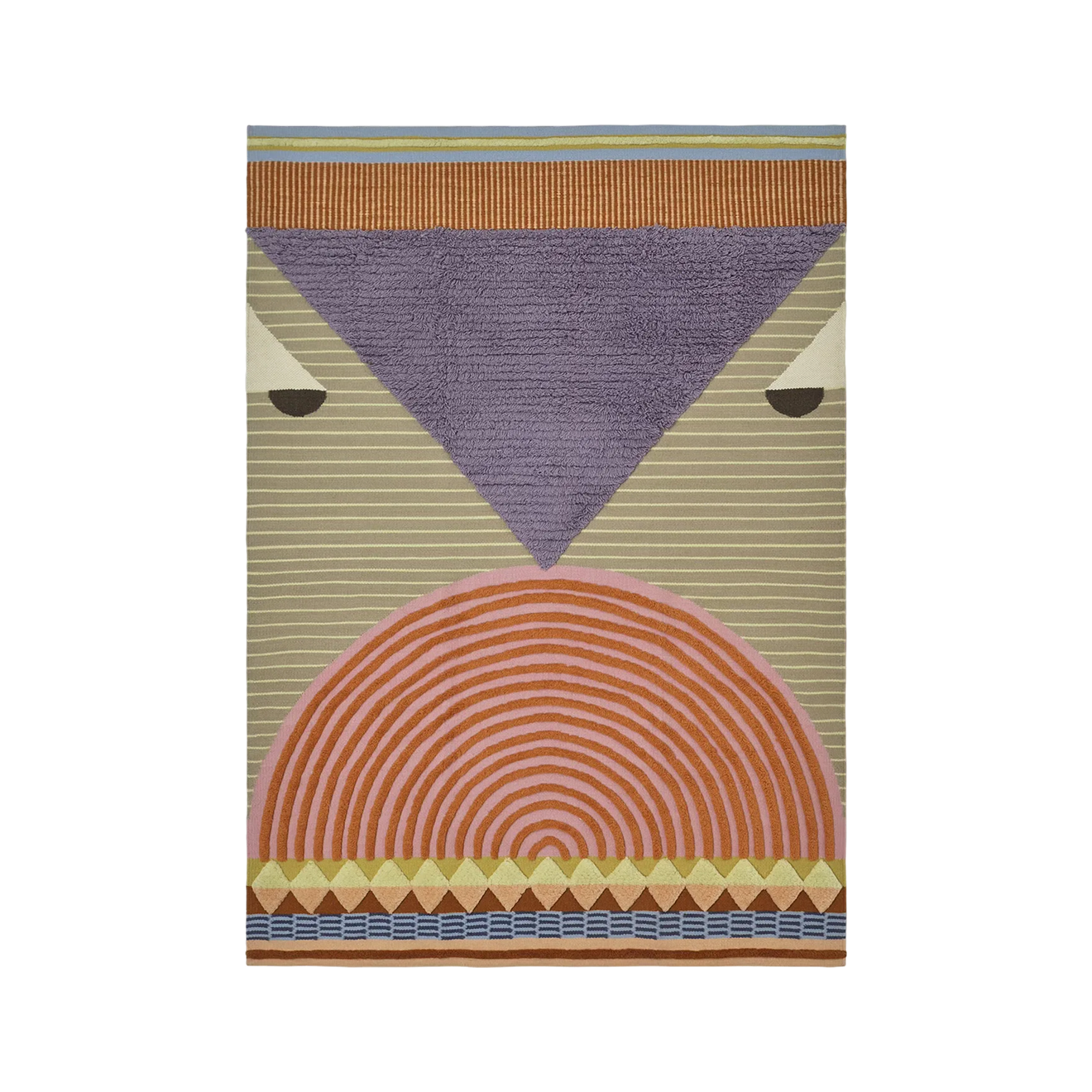 Принт вдохновлен яркими свадебными платьями, которые носили шведские невесты в 19 веке, — красно-розовые дуги отсылают к пышной юбке. Ковер создан вручную из натуральных материалов — шерсти и хлопка