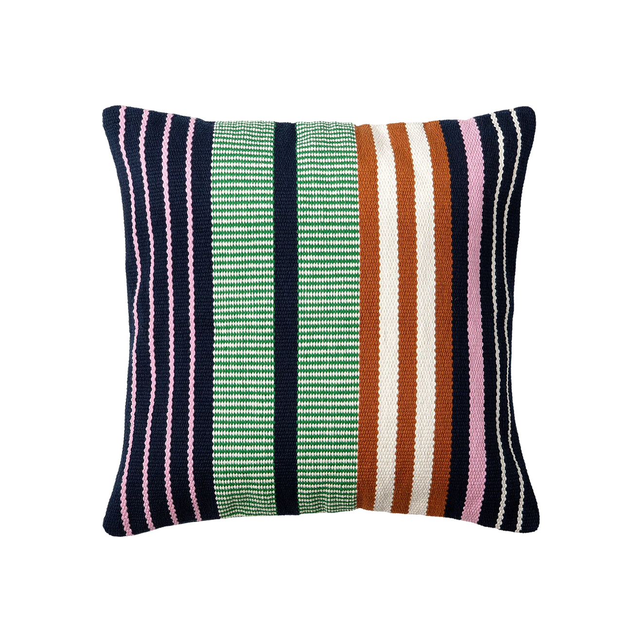 Так выглядел бы коврик в деревенском доме, если бы его сплела не российская бабушка Антонина Геннадьевна, а Дханалакшми из Индии. Неидеальные полоски напоминают, что дорожка создана вручную, а в составе только натуральные материалы — шерсть, джут и хлопок