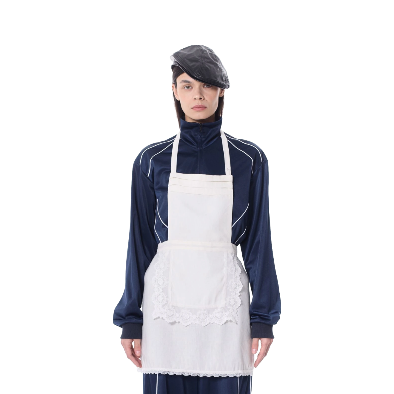 Фешен-мастодонты от Balmain до The Row активно убеждают нас в жизнеспособности сочетания юбки с брюками уже несколько лет, а фартуки — это следующий шаг. Такой аксессуар завирусился после показа Miu Miu SS 2026, но пока что не появился на улицах: изначальная специализация фартука слишком прочно засела в массовом сознании.