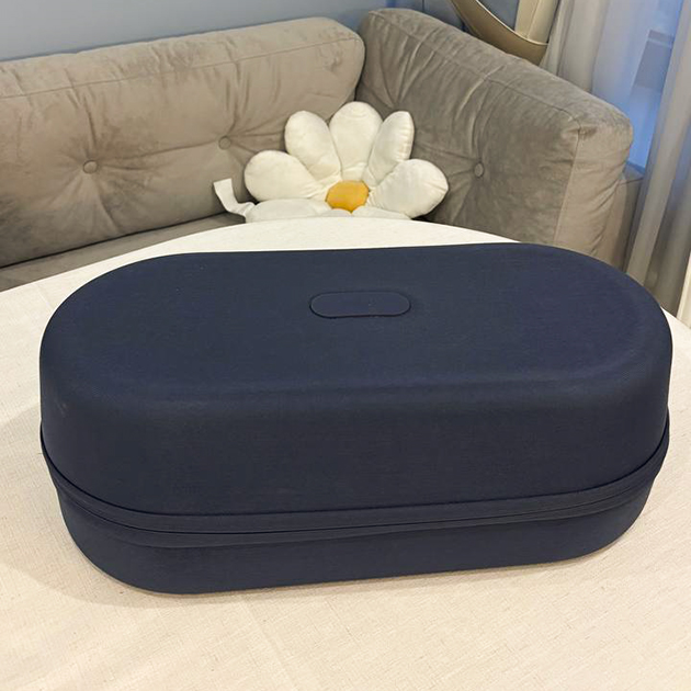 Кейс. Напоминаю, что я сравниваю новую модель стайлера со своим старичком, который все это время лежал в громоздкой коробке, раздражая меня этим и занимая много места. Возможно, поэтому кейс для хранения меня так порадовал: он удобный, компактный, приятный на ощупь, не занимает много места и хорошо смотрится на полке. Даже не проводя аналогии с моим прошлым стайлером и его хранением, кейс выполнен очень достойно. Как ни крути, он добавляет фену-щетке премиальности.