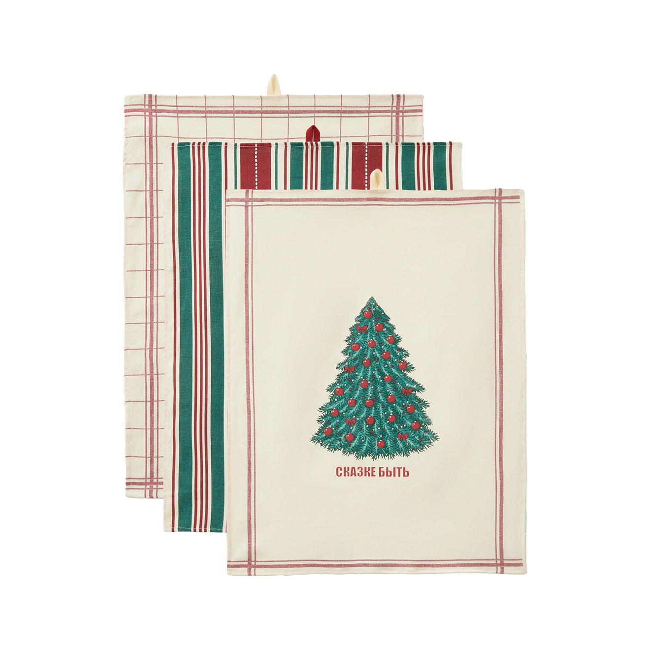 В этом году собственные марки российских магазинов уже в ноябре начали выпускать новогодние товары. У Lamoda Home мне приглянулся этот набор полотенец для кухни: он покорил меня своим минималистичным дизайном с флером винтажных открыток