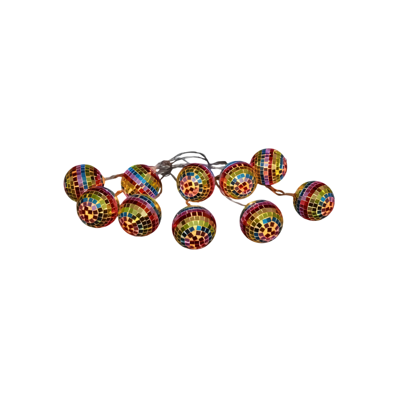 Я нашла эту гирлянду совершенно случайно в «Ашане» и просто не смогла оторвать от нее глаз. Нравится, что ее не хочется называть новогодней, думаю, эти диско-шары прекрасно впишутся и в летний интерьер. Вечером они горят приятным теплым светом, а утром наполняют комнату сотней разноцветных солнечных зайчиков