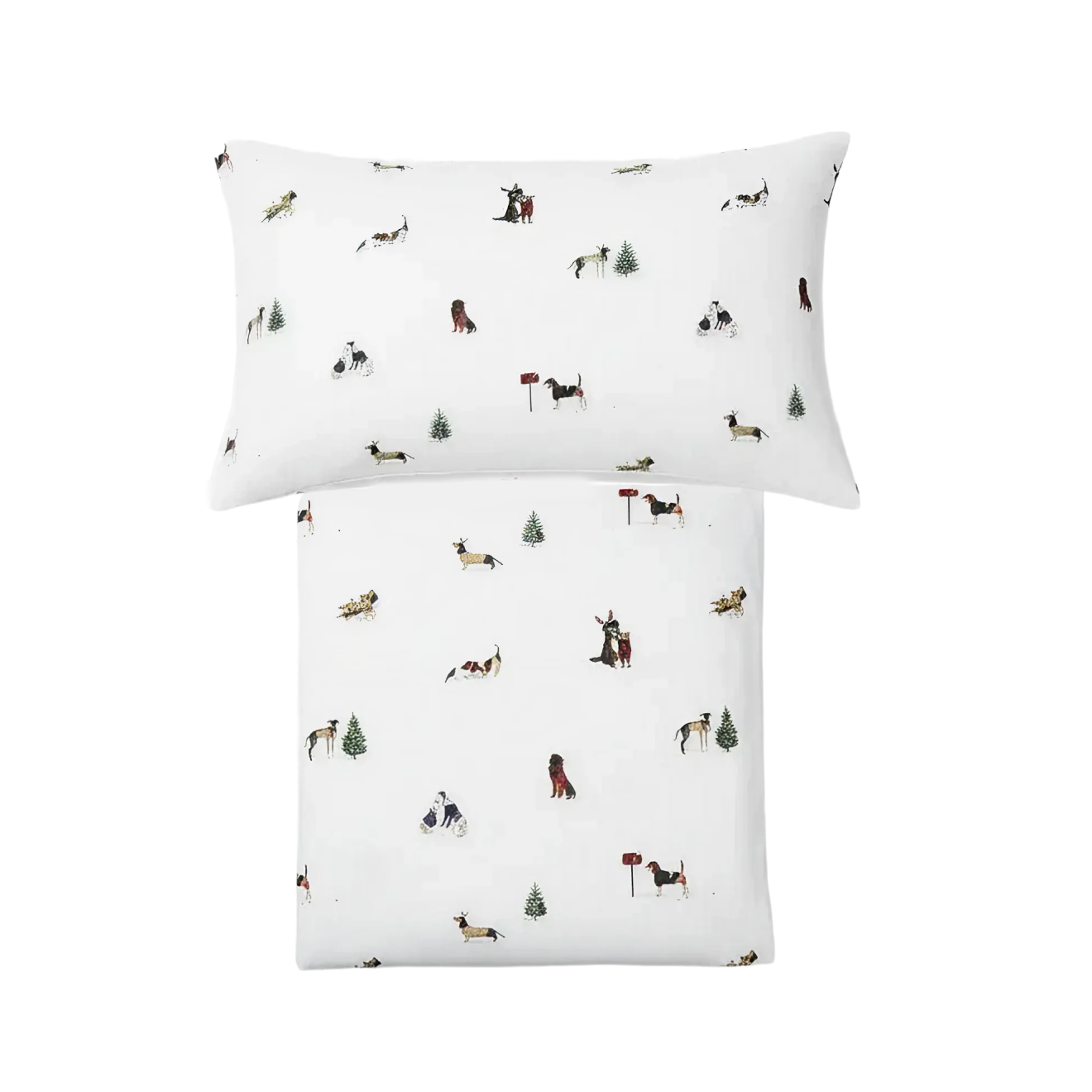 Собачники, вы здесь? На просторах интернета найдено изумительное постельное белье с изображением готовящихся к празднику далматинцев, биглей, бернских зенненхундов, борзых, такс и джек-расселов. Кстати, в новогоднем дропе Gnezdyshki есть комплекты и для кошатников, и для любителей зимних активностей