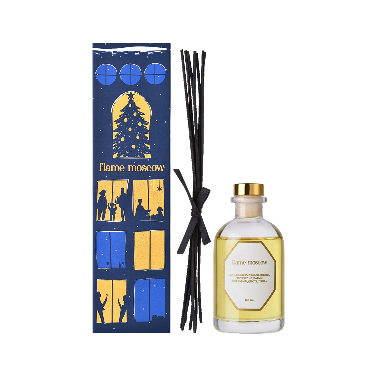 Пару лет назад купила новогоднюю свечу Flame Moscow, и это стало своеобразной традицией. Но сейчас решила поэкспериментировать: диффузор — более долгосрочный вариант ароматизации помещения, к тому же удобный. Выбрала аромат с нотами коньяка, корицы, чернослива и березового дегтя