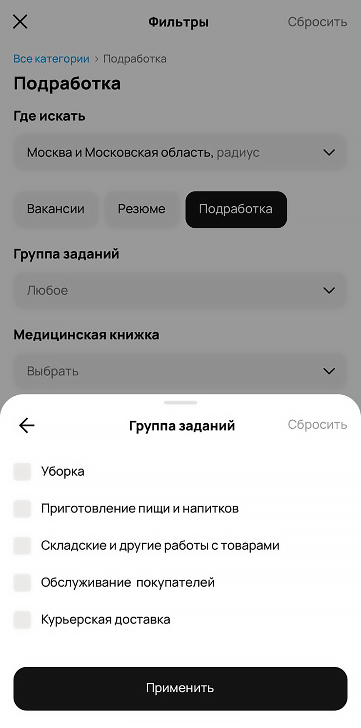 Сейчас сервис работает только в приложении «Авито» — в разделе «Подработка» под поисковой строкой или в фильтрах. Со временем его планируют интегрировать в веб-версию.