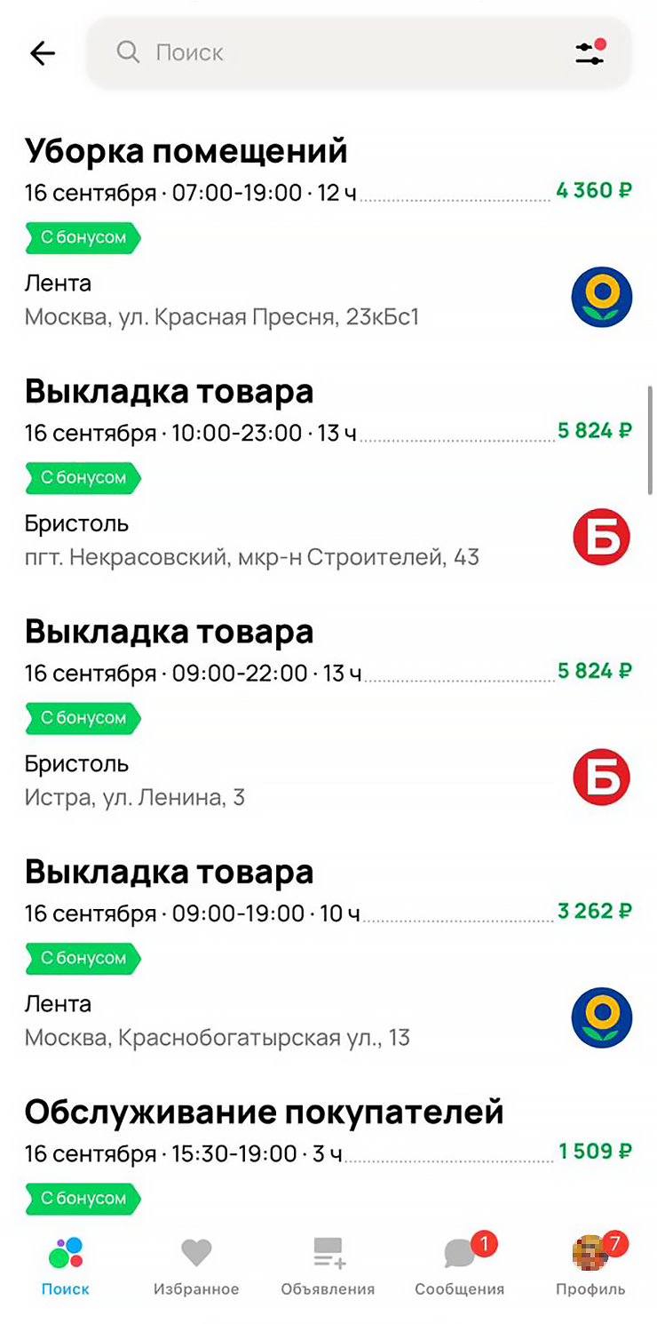 Сейчас на платформе размещено более 3 000 смен от крупных заказчиков. Обычно ищут сборщиков, упаковщиков, грузчиков и сотрудников для выкладки товаров. В приоритете — исполнители, готовые быстро выйти на работу.