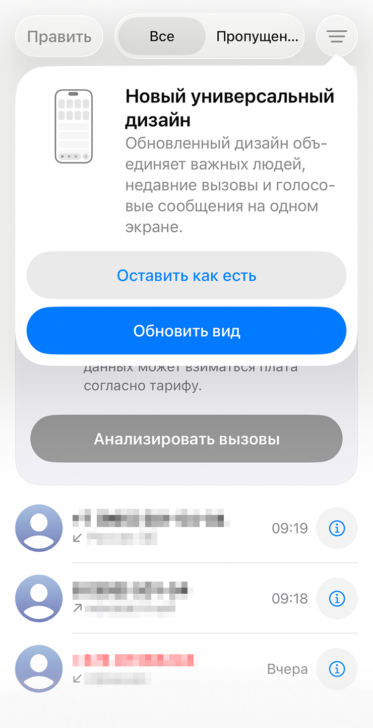 Обновление приложения «Телефон»