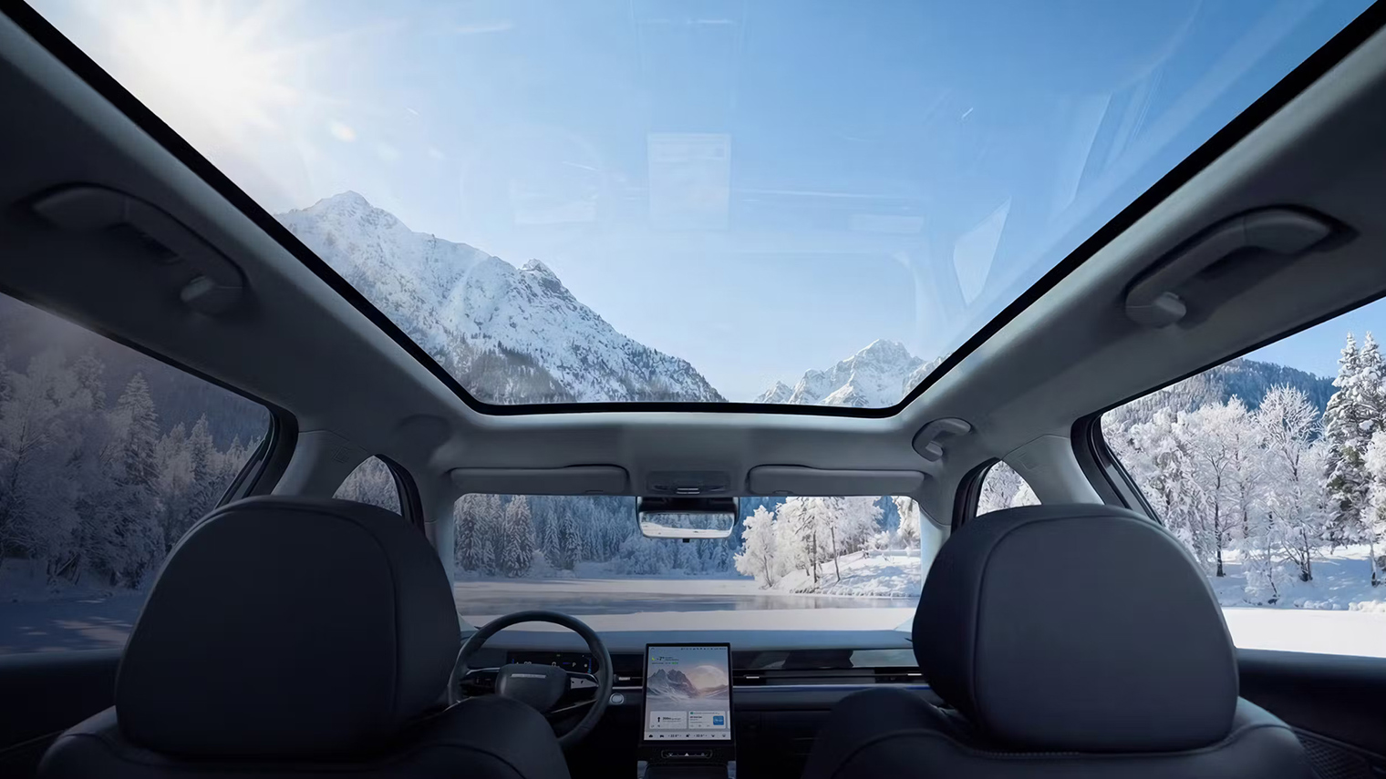 На центральной консоли — мультимедийный экран с поддержкой Apple CarPlay и Android Auto, диагональю 9″ в базовой версии и 13,2″ в более дорогих комплектациях.
