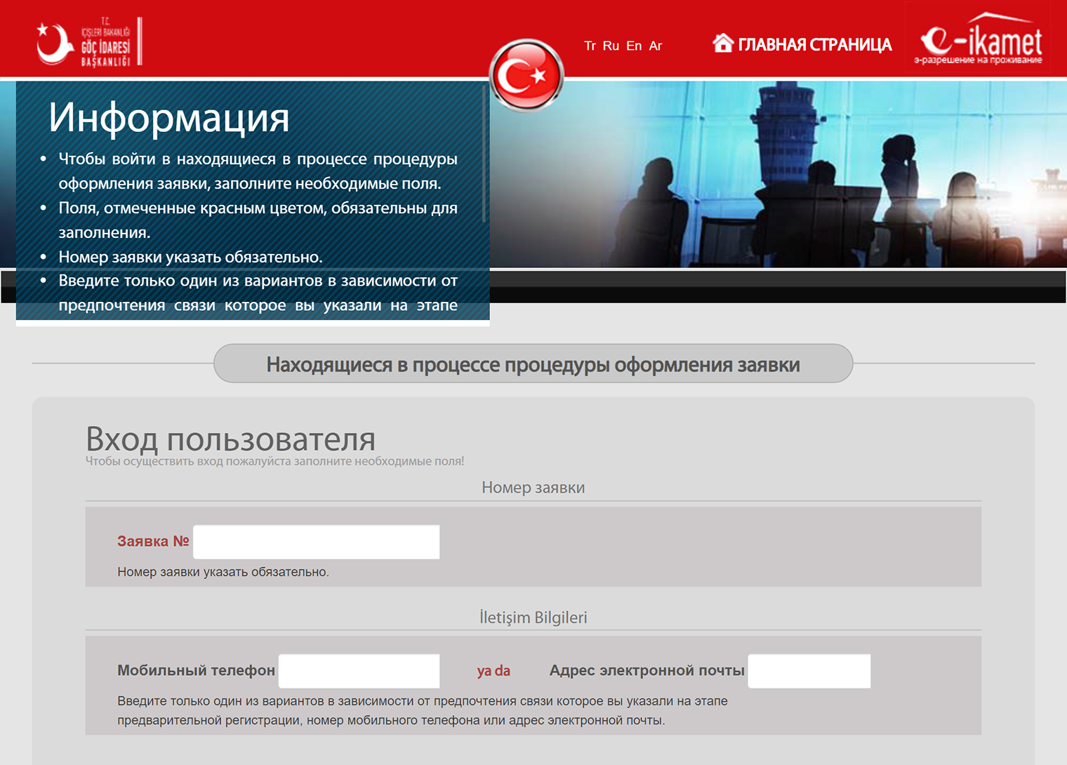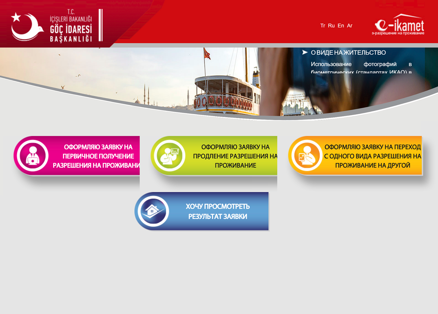 Заявку на краткосрочный, семейный, студенческий и долгосрочный икамет подают на сайте e-ikamet.goc.gov.tr. Те, кто претендует на ВНЖ по гуманитарным причинам или стал жертвой торговли людьми, обращаются напрямую в офисы миграционной службы. Расскажем подробнее про дистанционную подачу заявки.