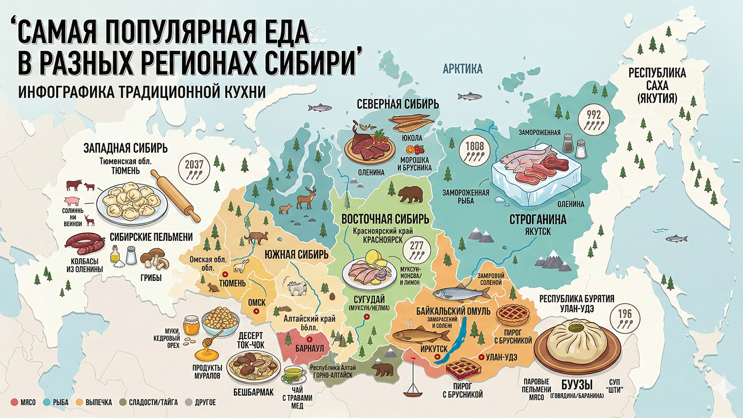 Опирается на знания о мире. Nano Banana 2 использует базу знаний Gemini, актуальную информацию, картинки из интернета, чтобы точнее генерировать изображения определенных предметов. Например, нейросеть может погуглить, что едят в Сибири, и на основе этого сгенерировать инфографику.