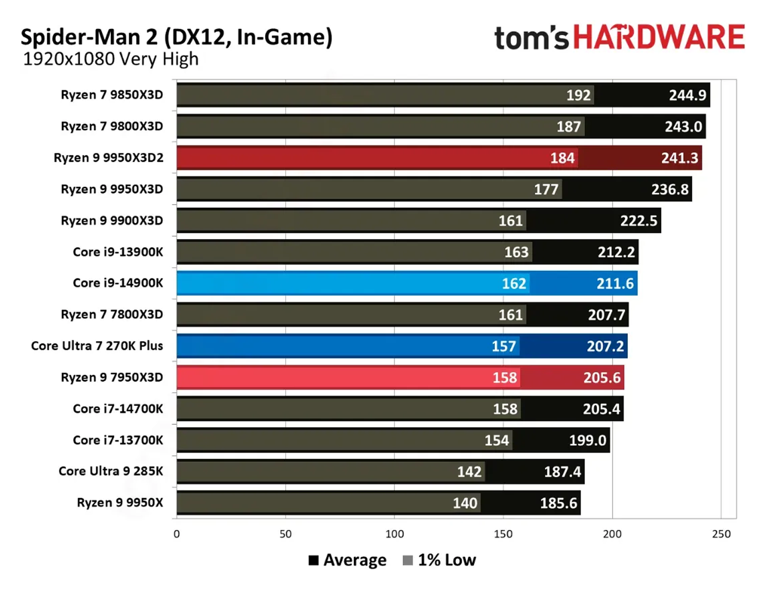 Техноблогеры пришли к выводу, что Ryzen 9 9950X3D2 неплохо справляется с рабочими и базовыми задачами, но заметно уступает прошлым моделями и конкурентам от Intel в плане игр.
