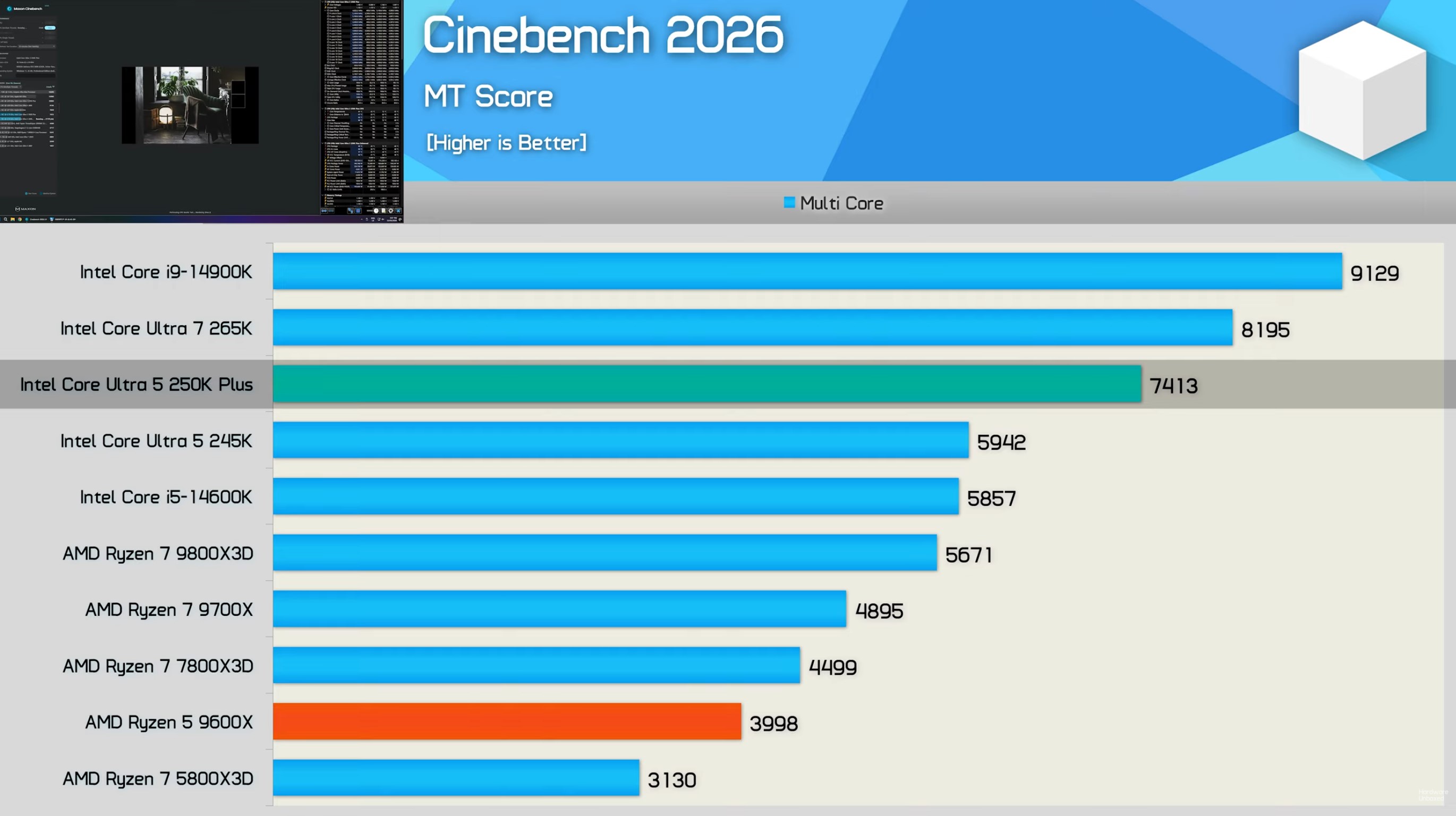 Новые процессоры протестировали и в бенчмарках. В Cinebench 250K Plus оказалась на 85% мощнее AMD Ryzen 5 9600X, а также на 35 и 53% быстрее, чем Ryzen 7 9850X3D и Ryzen 7 9800X3D соответственно. Разница в мощности между 250K Plus и 245K составила 25%.